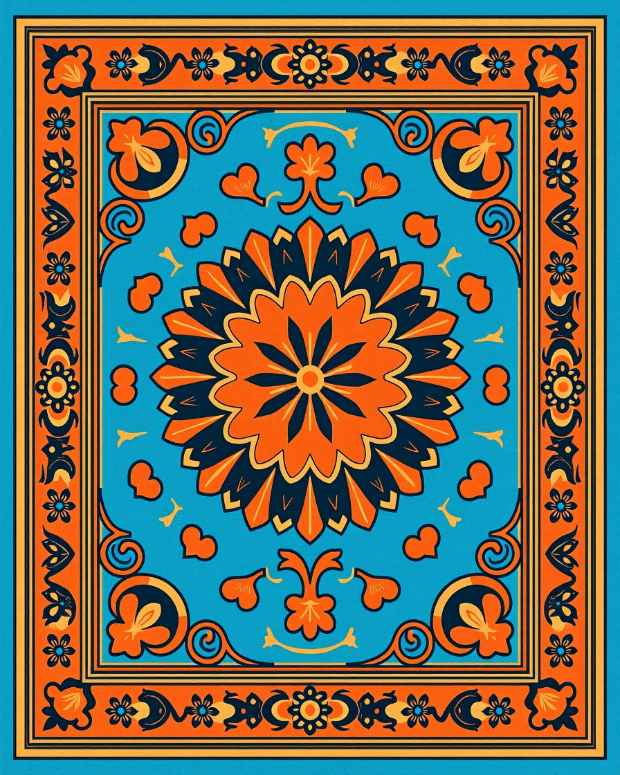 Heritage Floral Medallion with Interlocking Rosette (Blue)