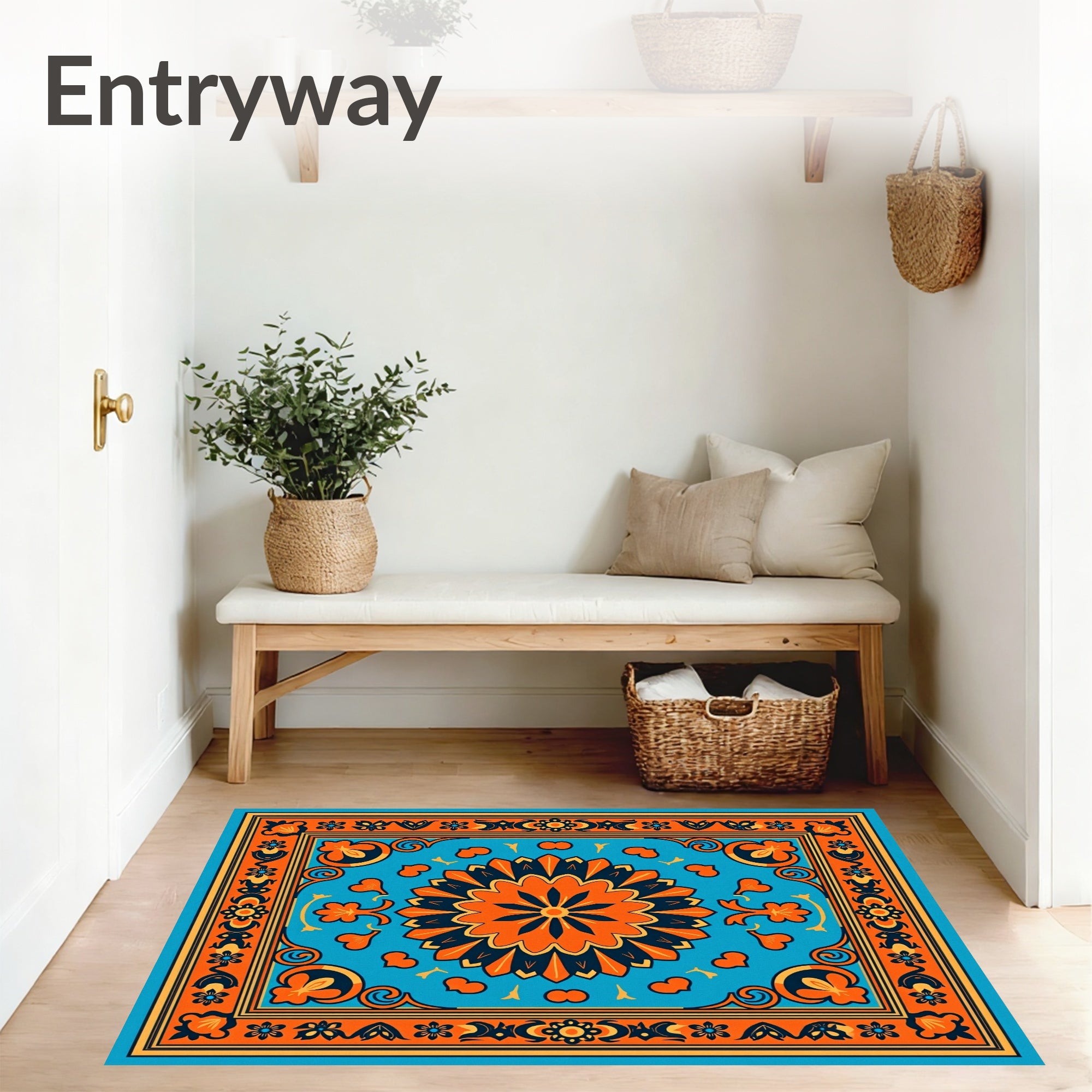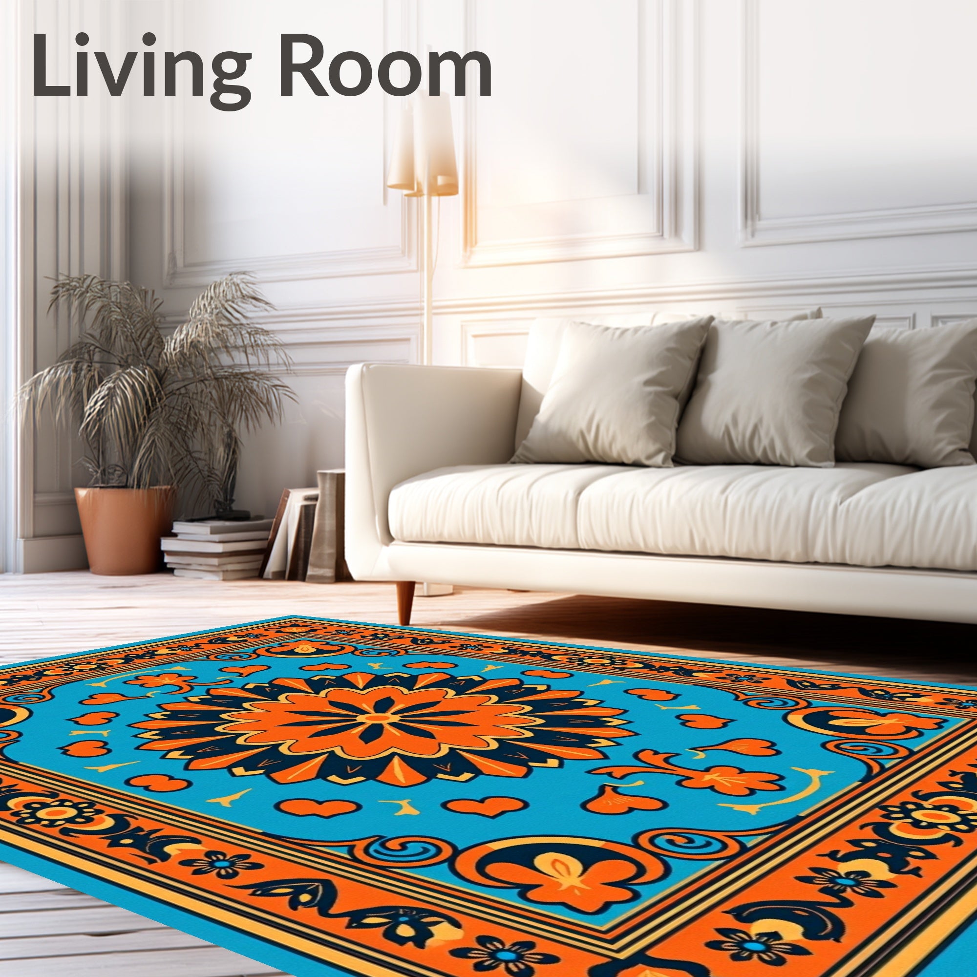 Flatwoven High Traffic Area Rug, Heritage Floral Medallion with Interlocking Rosette, Non Slip, Stain Resistant, Washable Area Rugs for Living Room, Bedroom (Blue) Overview: