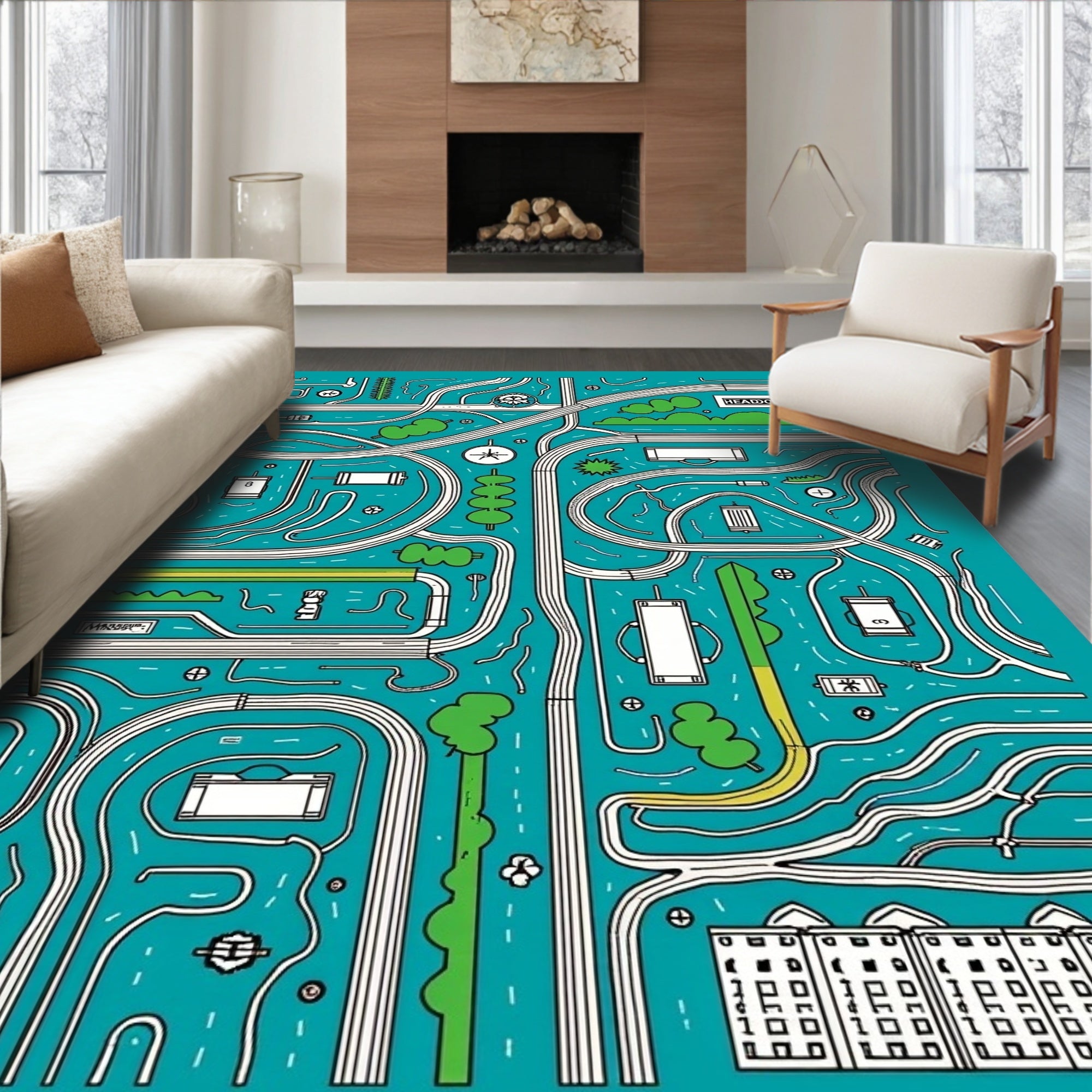 Flatwoven High Traffic Area Rug, Heroic Canine Rescue Squad City Navigation Chart, Non Slip, Stain Resistant, Washable Area Rugs for Living Room, Bedroom (Blue) Overview: