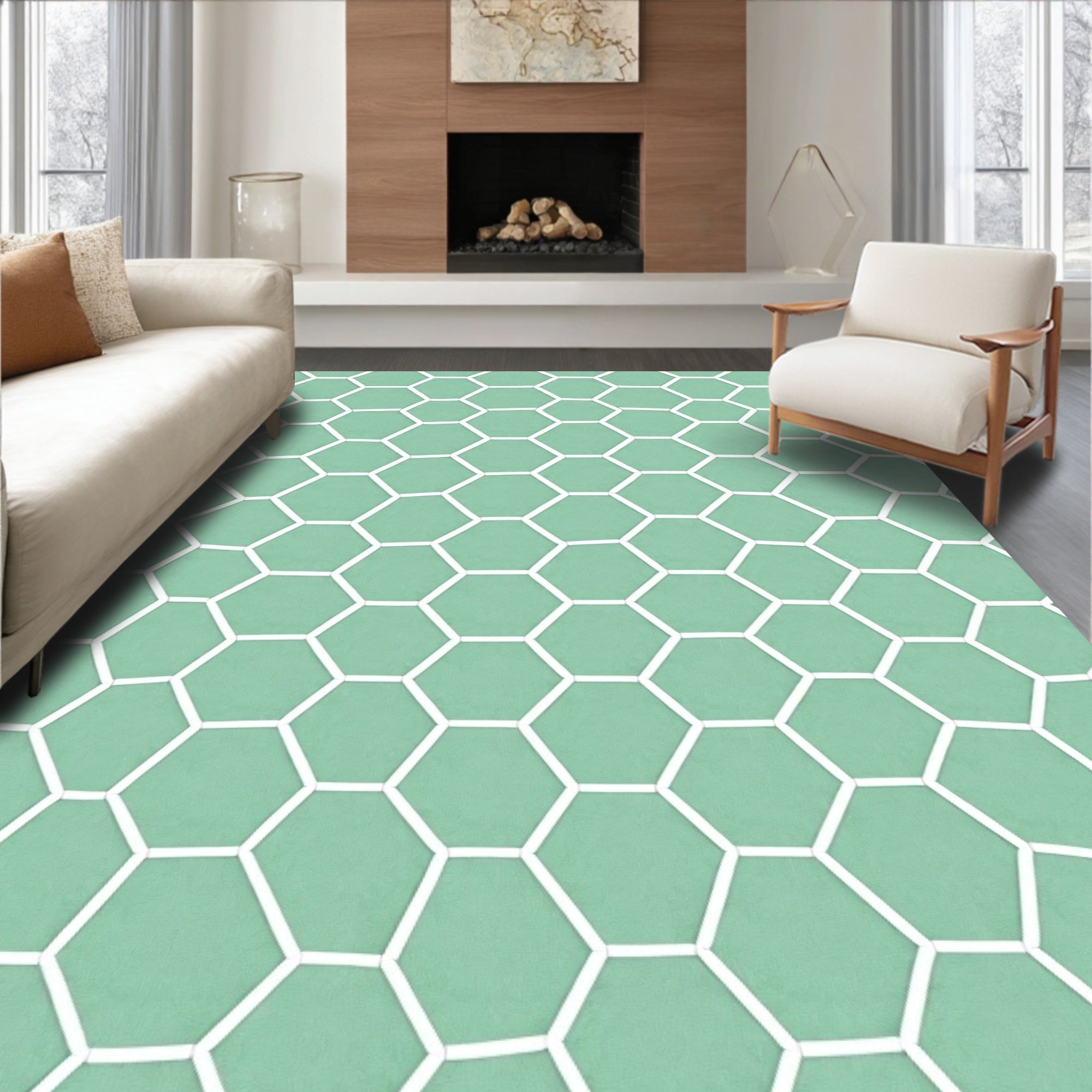 Flatwoven High Traffic Area Rug, Hexagonal Honeycomb Lattice with Modern Minimalist Appeal, Non Slip, Stain Resistant, Washable Area Rugs for Living Room, Bedroom (Green) Overview: