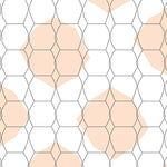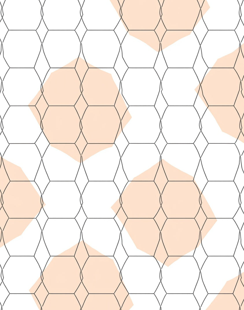 Drawing inspiration from the playful precision of Midcentury California Optimism and the organic motifs found in Bauhaus textile studies, this design is a visual ode to structured whimsy. The honeycomb lattice flows across the field like rhythmic vibrations, interrupted by sun-drenched peach blooms that mimic the soft glow of a Pacific dusk. It sits at the intersection of Neo-Storytelling Decor and minimalist geometry, where thin, ink-like strokes meet bold, architectural shapes. When placed in a room, the atmosphere undergoes a quiet metamorphosis: stark angles soften, the ceiling feels unburdened, and the floor becomes a hallowed gallery of airy light. This is for the soul drawn to clarity over clutter—the heart-led homebuilder who believes that even the most functional spaces deserve a touch of poetic grace. Don't just fill your space—anchor it with a design that breathes life and light into every corner. Step onto this scene and live in resonance.