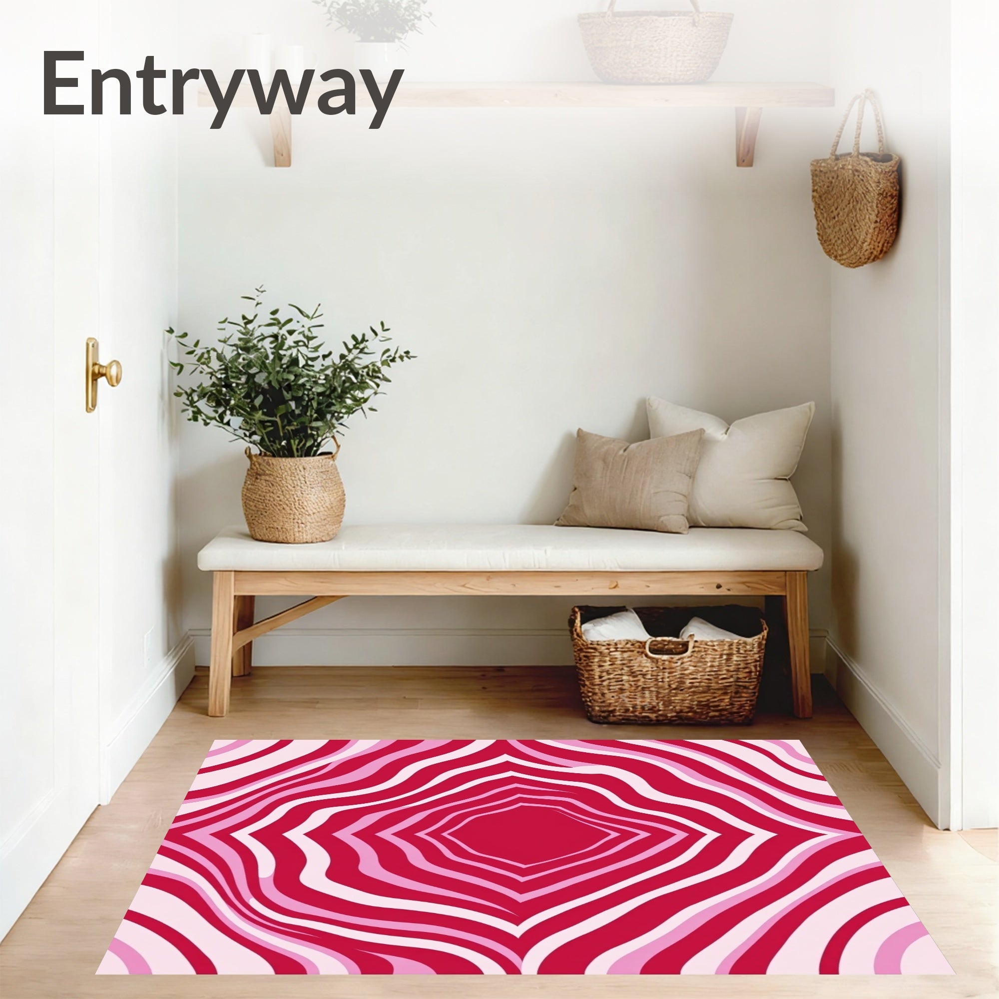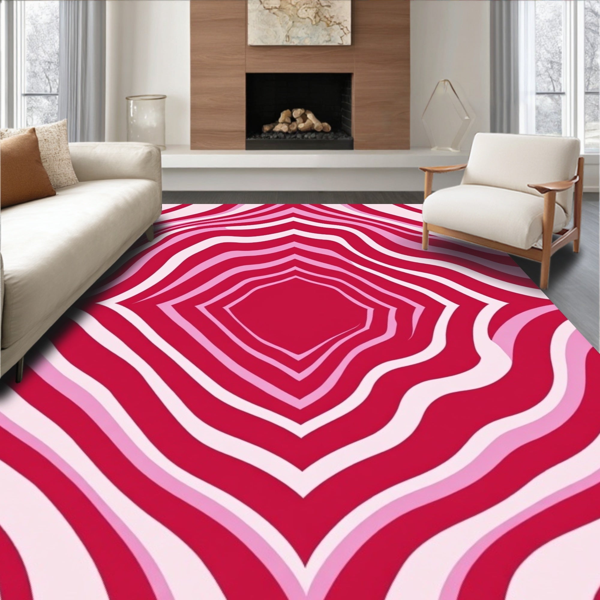 Flatwoven High Traffic Area Rug, Innovative Ripple Effect Modernist Avant Garde Zigzag, Non Slip, Stain Resistant, Washable Area Rugs for Living Room, Bedroom (Pink) Overview: