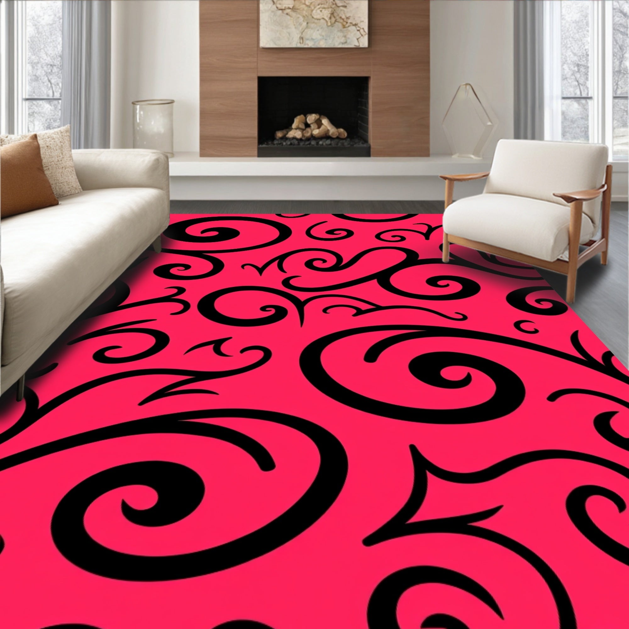 Flatwoven High Traffic Area Rug, Innovative Whirl Dynamic Flowing Decorative Statement, Non Slip, Stain Resistant, Washable Area Rugs for Living Room, Bedroom (Pink) Overview: