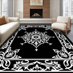 Flatwoven High Traffic Area Rug, Inspired Floral Crest with Intricate Scrollwork, Non Slip, Stain Resistant, Washable Area Rugs for Living Room, Bedroom (Black) Overview: