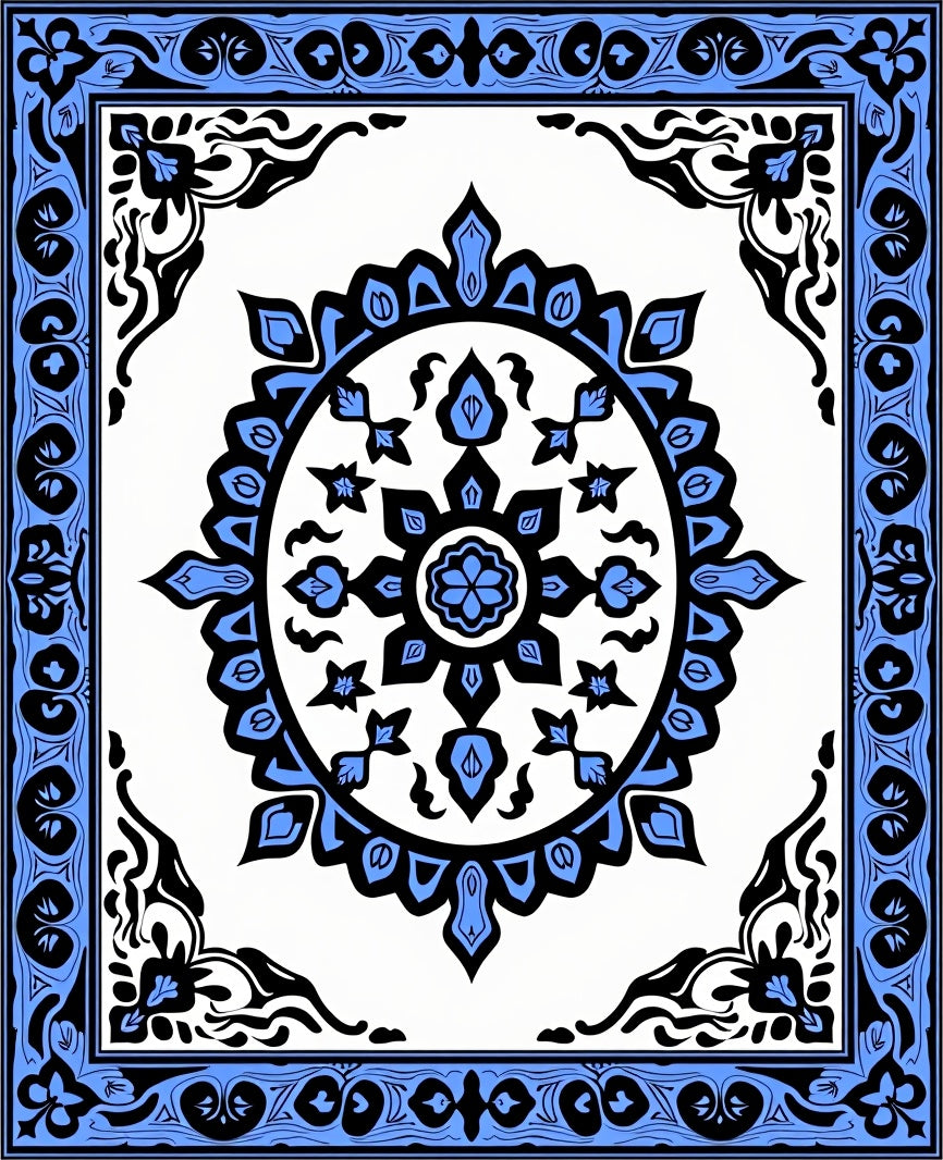 Interlacing Boho Medallion Floral Vintage Inspired Textile (Blue)