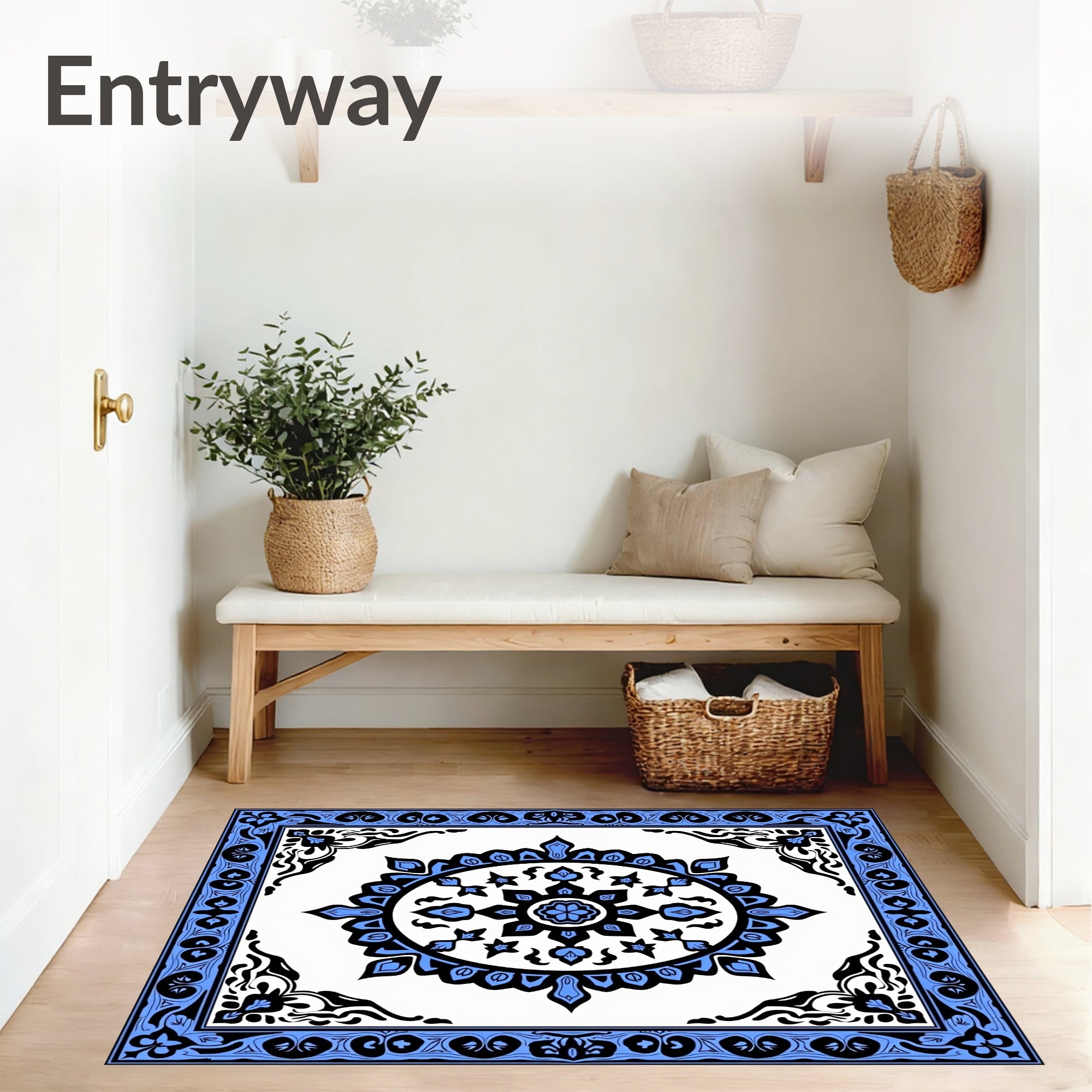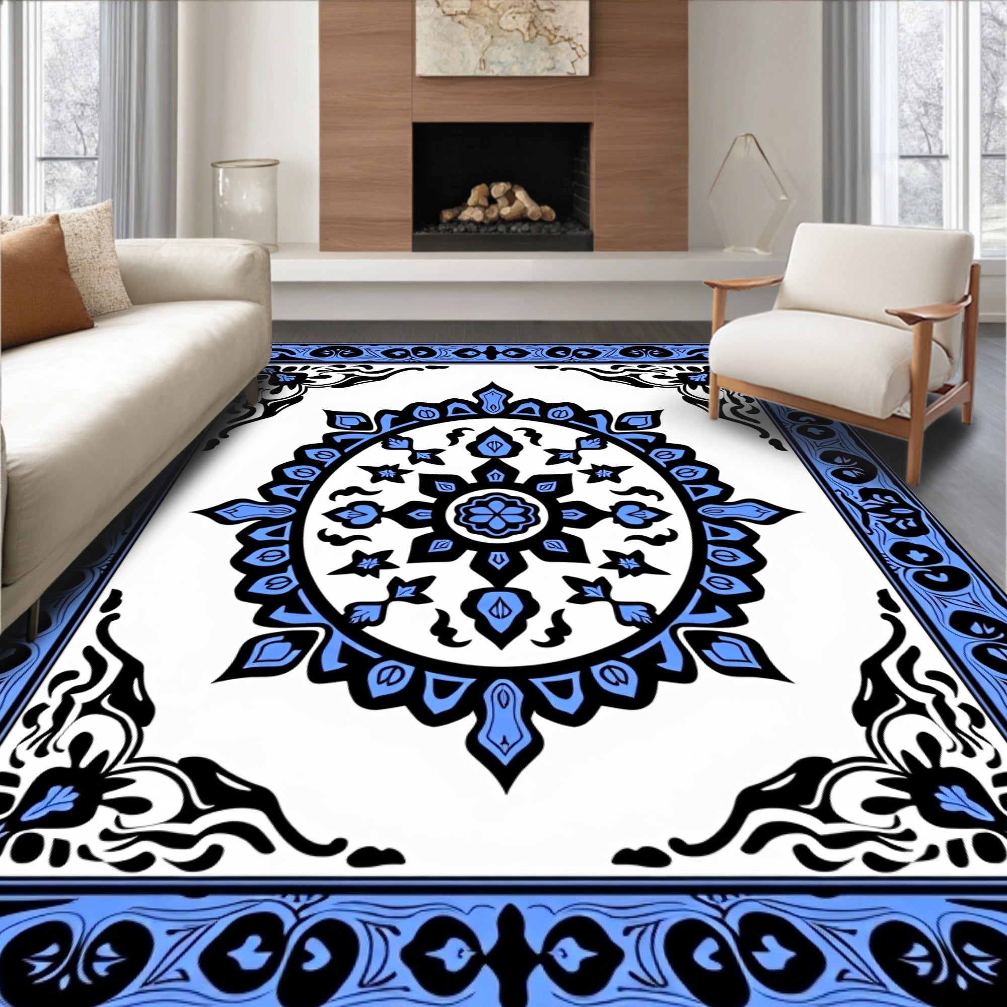 Flatwoven High Traffic Area Rug, Interlacing Boho Medallion Floral Vintage Inspired Textile, Non Slip, Stain Resistant, Washable Area Rugs for Living Room, Bedroom (Blue) Overview: