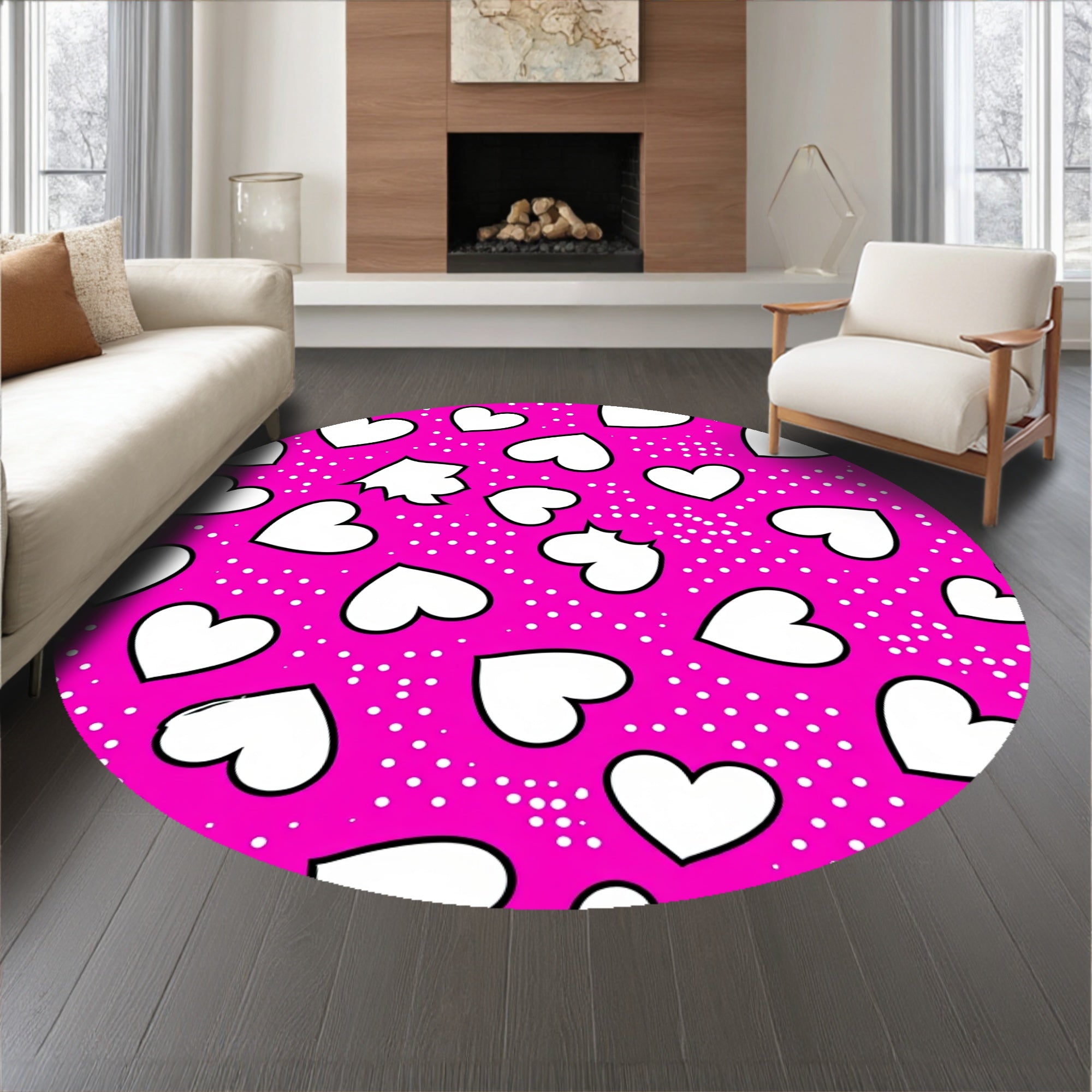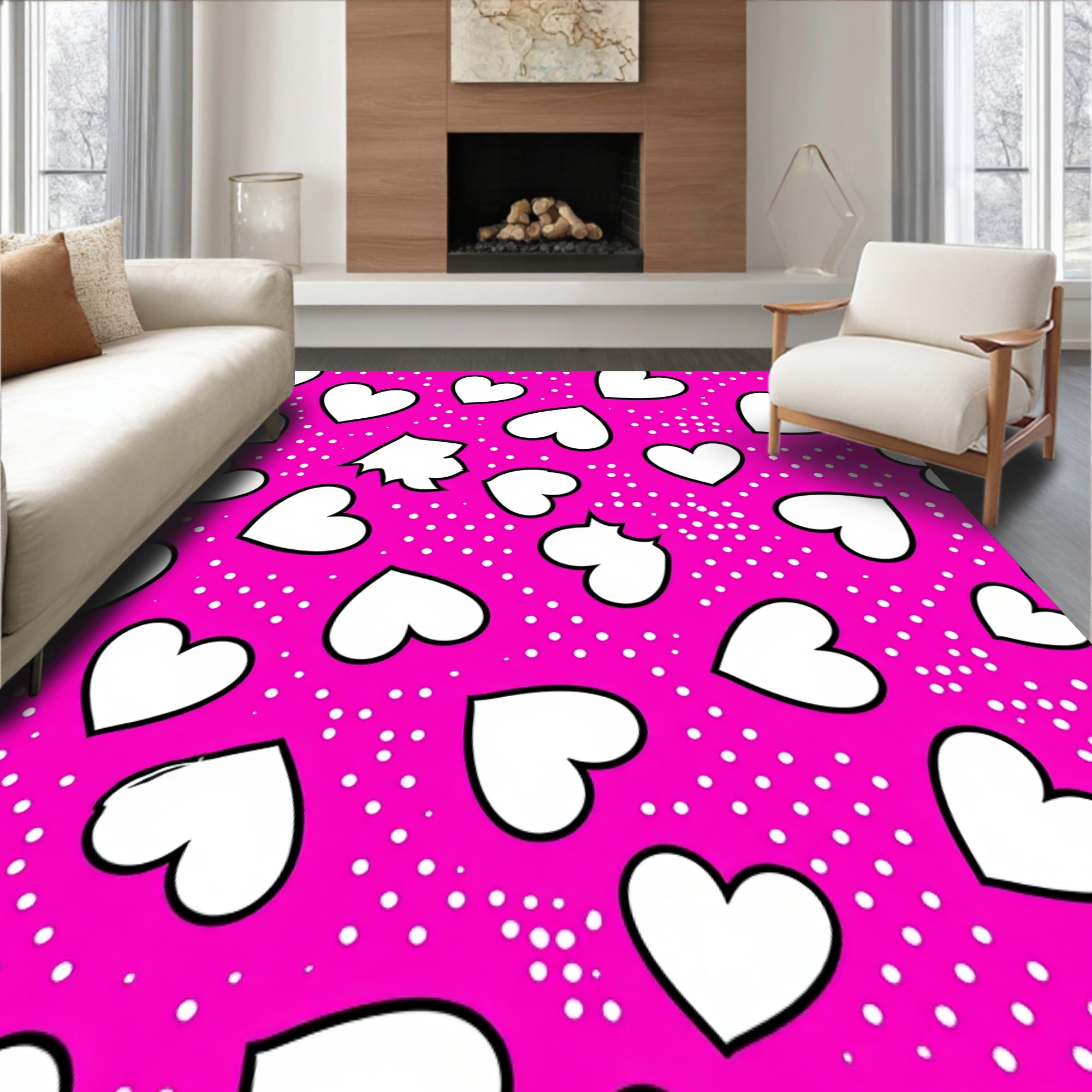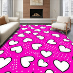 Flatwoven High Traffic Area Rug, Interlocking Hearts Motif with Playful Polka Dot Accents and Artistic Flair, Non Slip, Stain Resistant, Washable Area Rugs for Living Room, Bedroom (Pink) Overview: