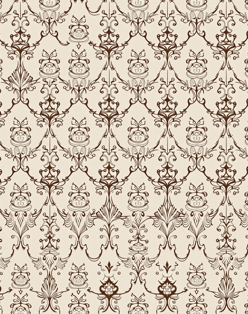 Interlocking Lattice Mosaic with Vintage Scrollwork Accents (Beige)