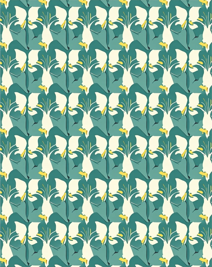 Interlocking Leaf Lattice with Stylized Petal Flourishes and (Teal)