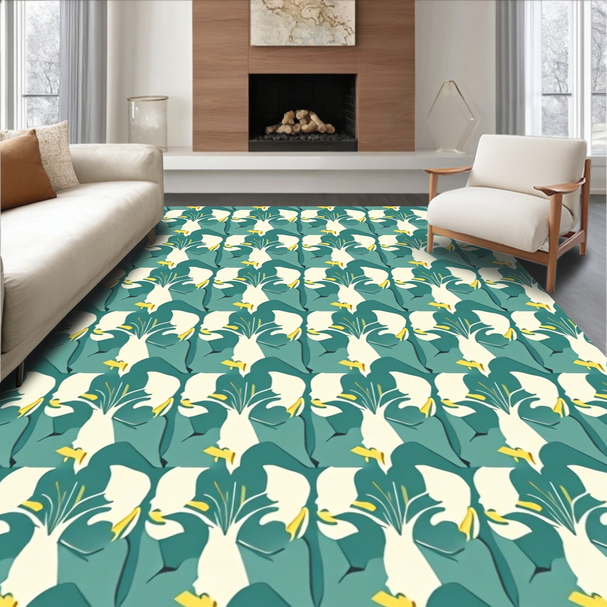 Flatwoven High Traffic Area Rug, Interlocking Leaf Lattice with Stylized Petal Flourishes and, Non Slip, Stain Resistant, Washable Area Rugs for Living Room, Bedroom (Teal) Overview: