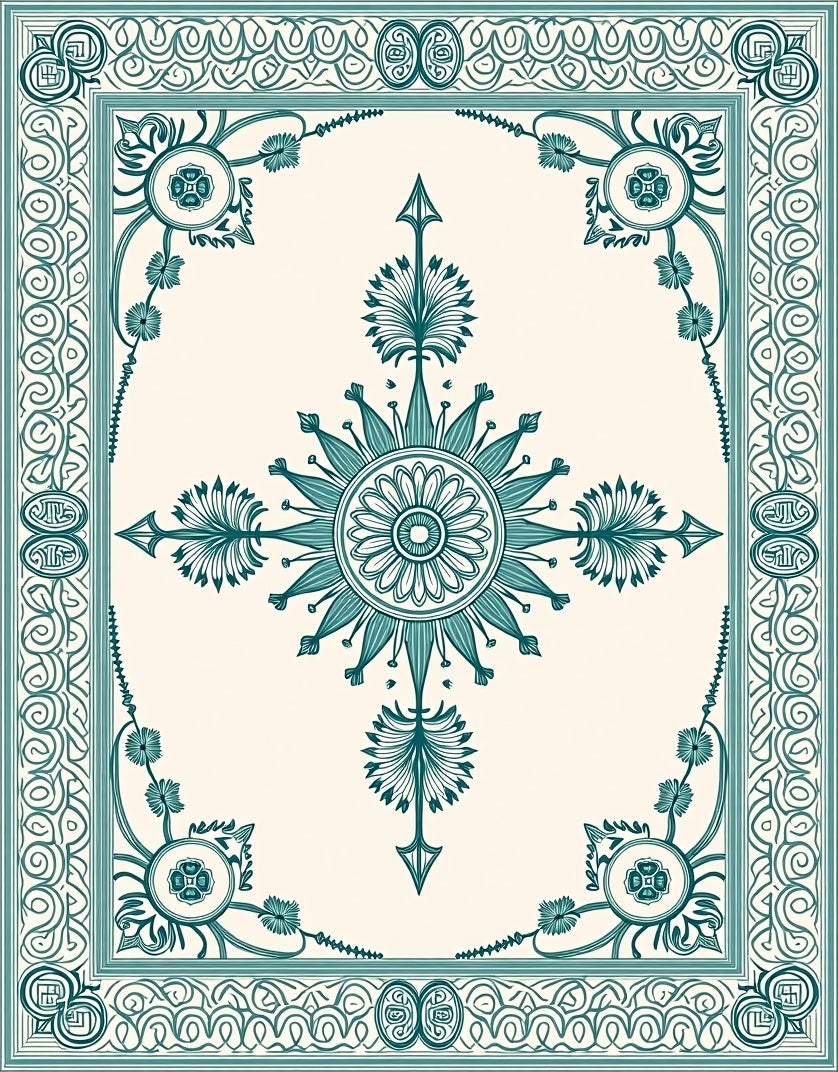 Interlocking Motifs with Subtle Floral Accents (Blue)