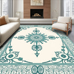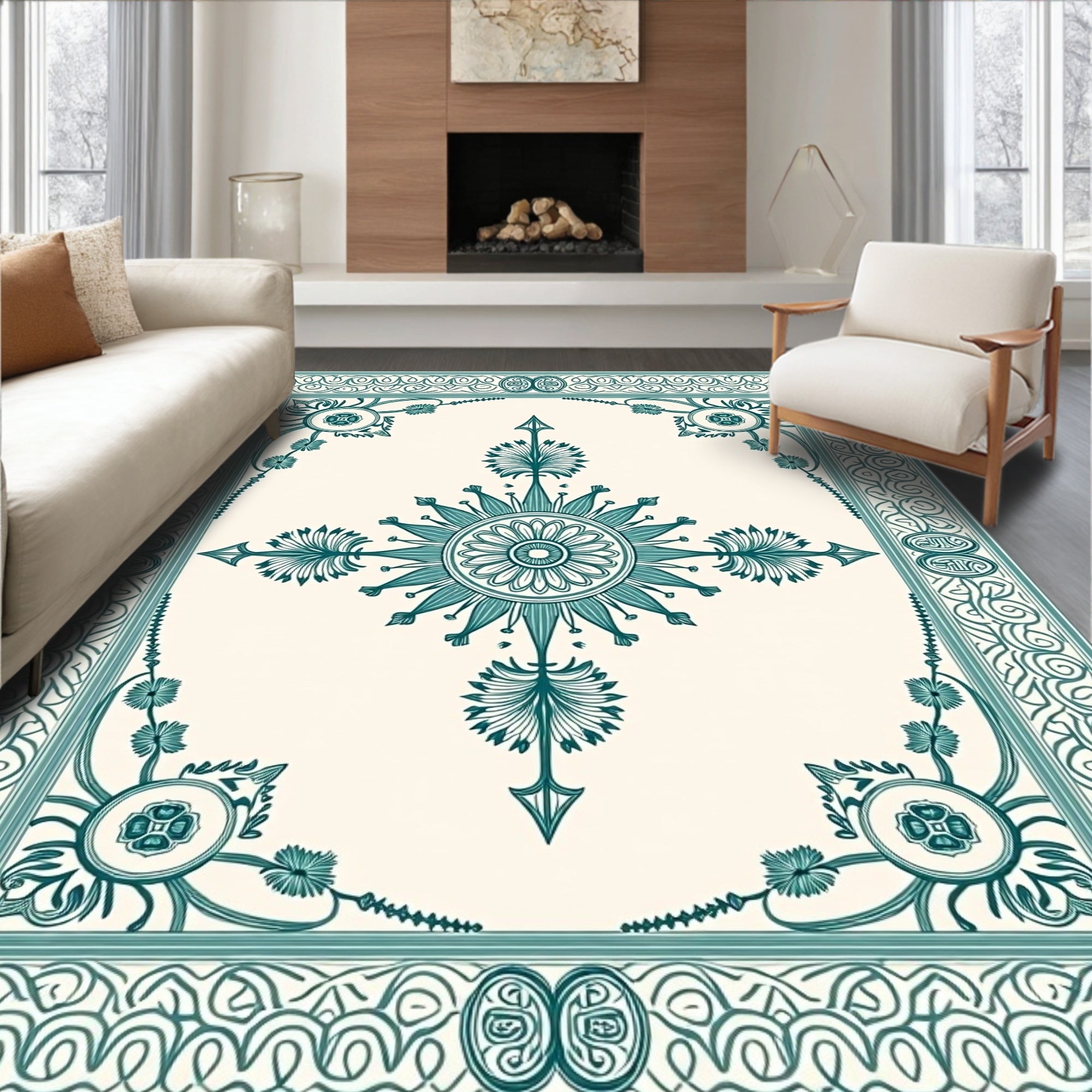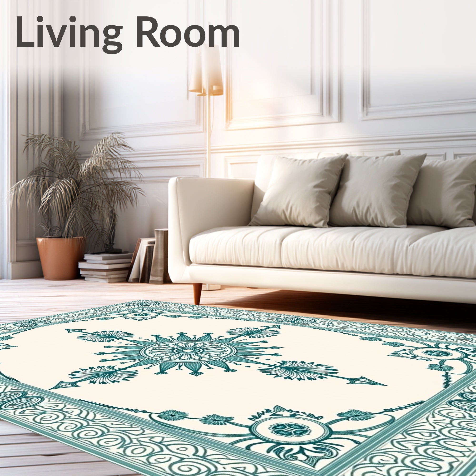 Flatwoven High Traffic Area Rug, Interlocking Motifs with Subtle Floral Accents, Non Slip, Stain Resistant, Washable Area Rugs for Living Room, Bedroom (Blue) Overview: