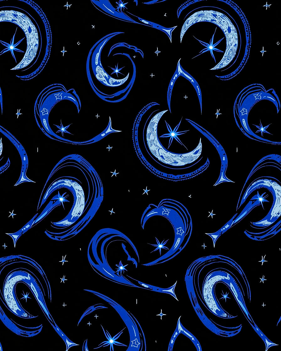 Interstellar Dreamscape with Floating Moons and Starlit Trails (Black)