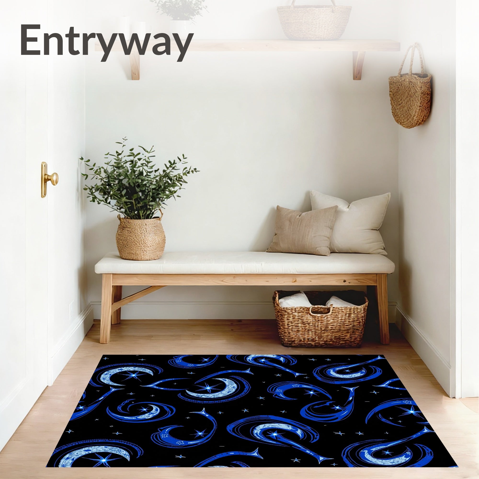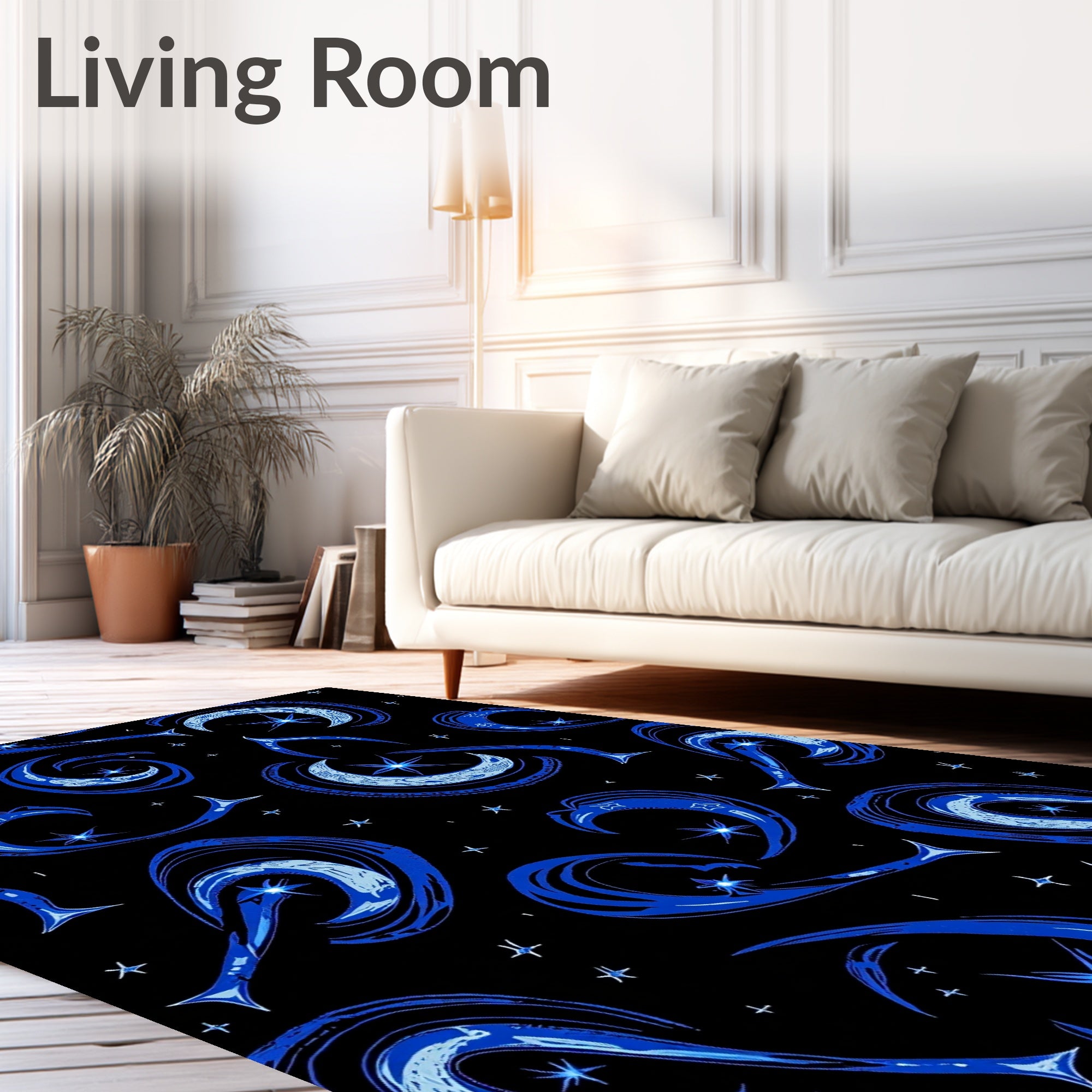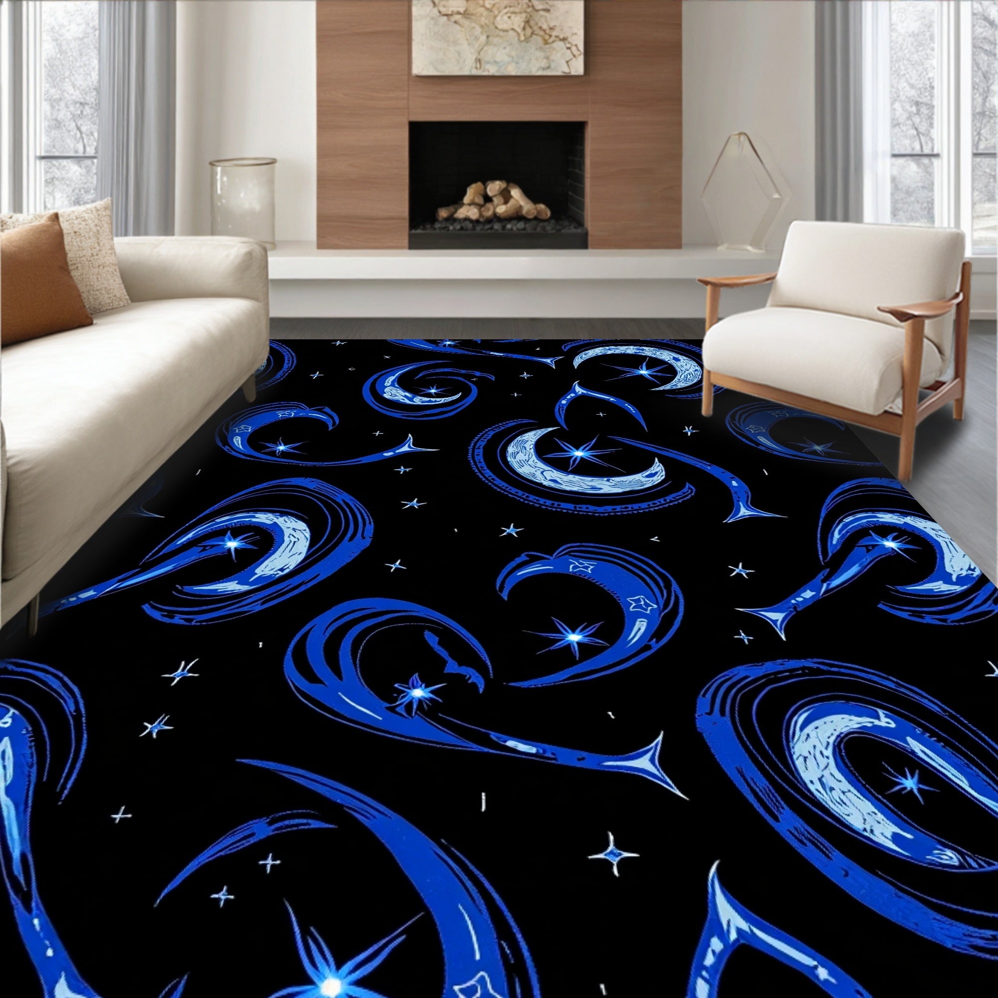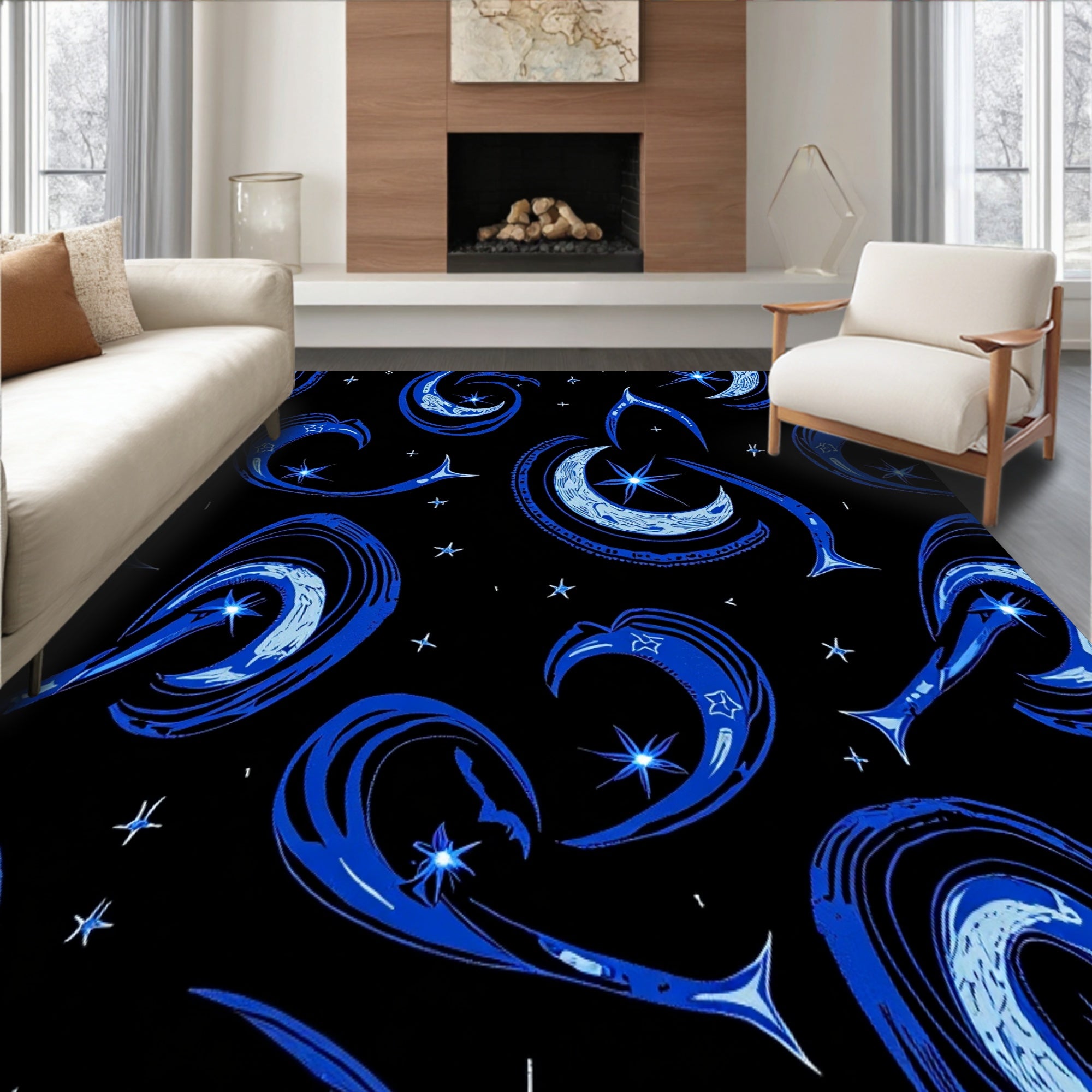 Flatwoven High Traffic Area Rug, Interstellar Dreamscape with Floating Moons and Starlit Trails, Non Slip, Stain Resistant, Washable Area Rugs for Living Room, Bedroom (Black) Overview: