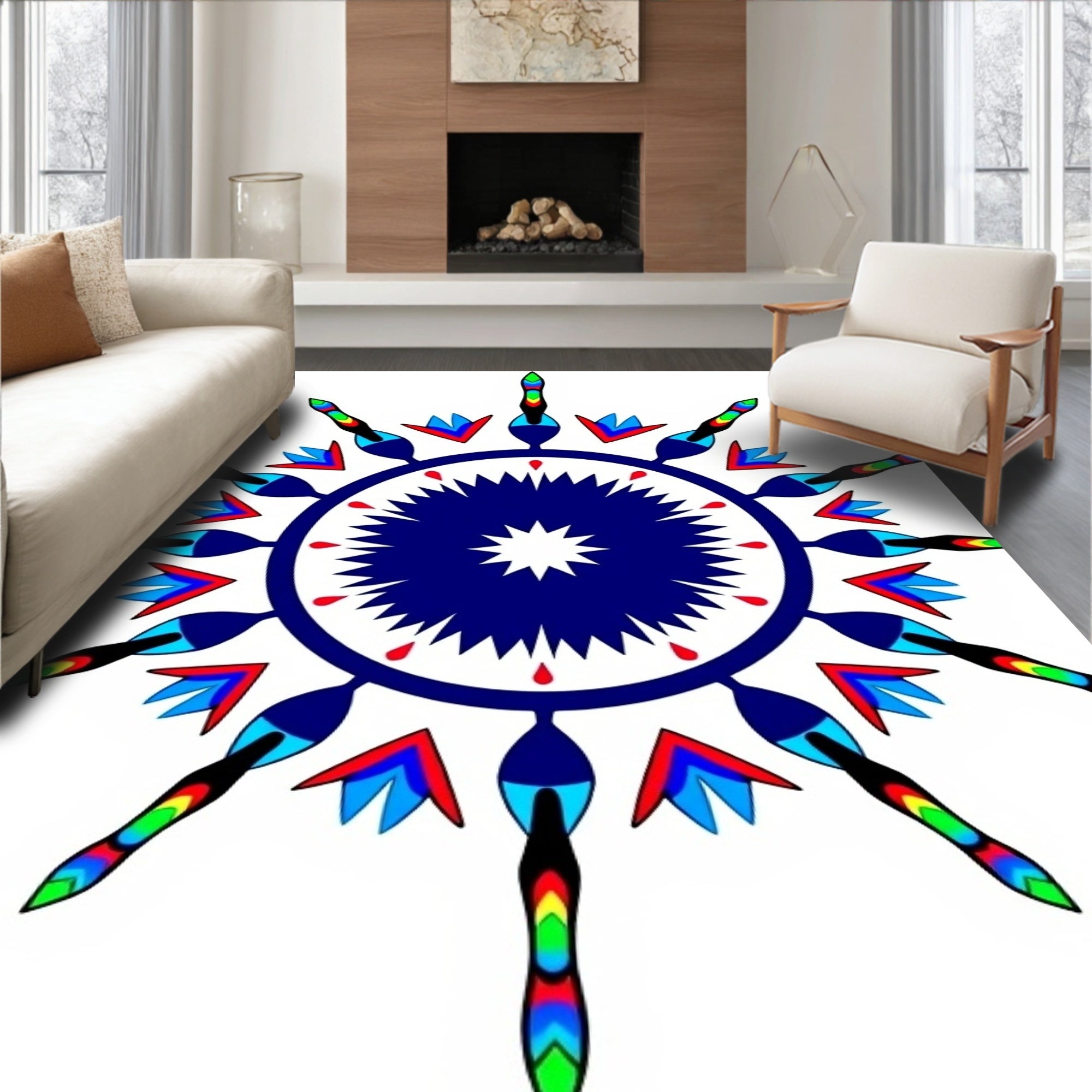 Flatwoven High Traffic Area Rug, Kaleidoscope Prism Tableau, Non Slip, Stain Resistant, Washable Area Rugs for Living Room, Bedroom (Blue) Overview: