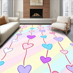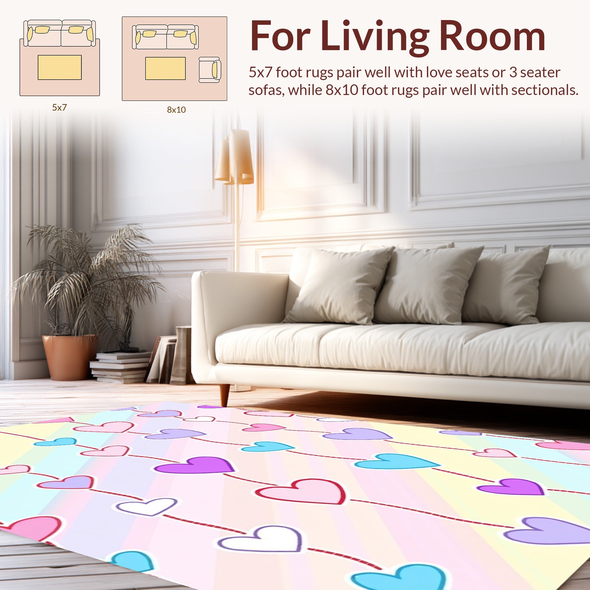 Flatwoven High Traffic Area Rug, Kawaii Cascade with Floating Love Symbols, Non Slip, Stain Resistant, Washable Area Rugs for Living Room, Bedroom (Pink) Overview: