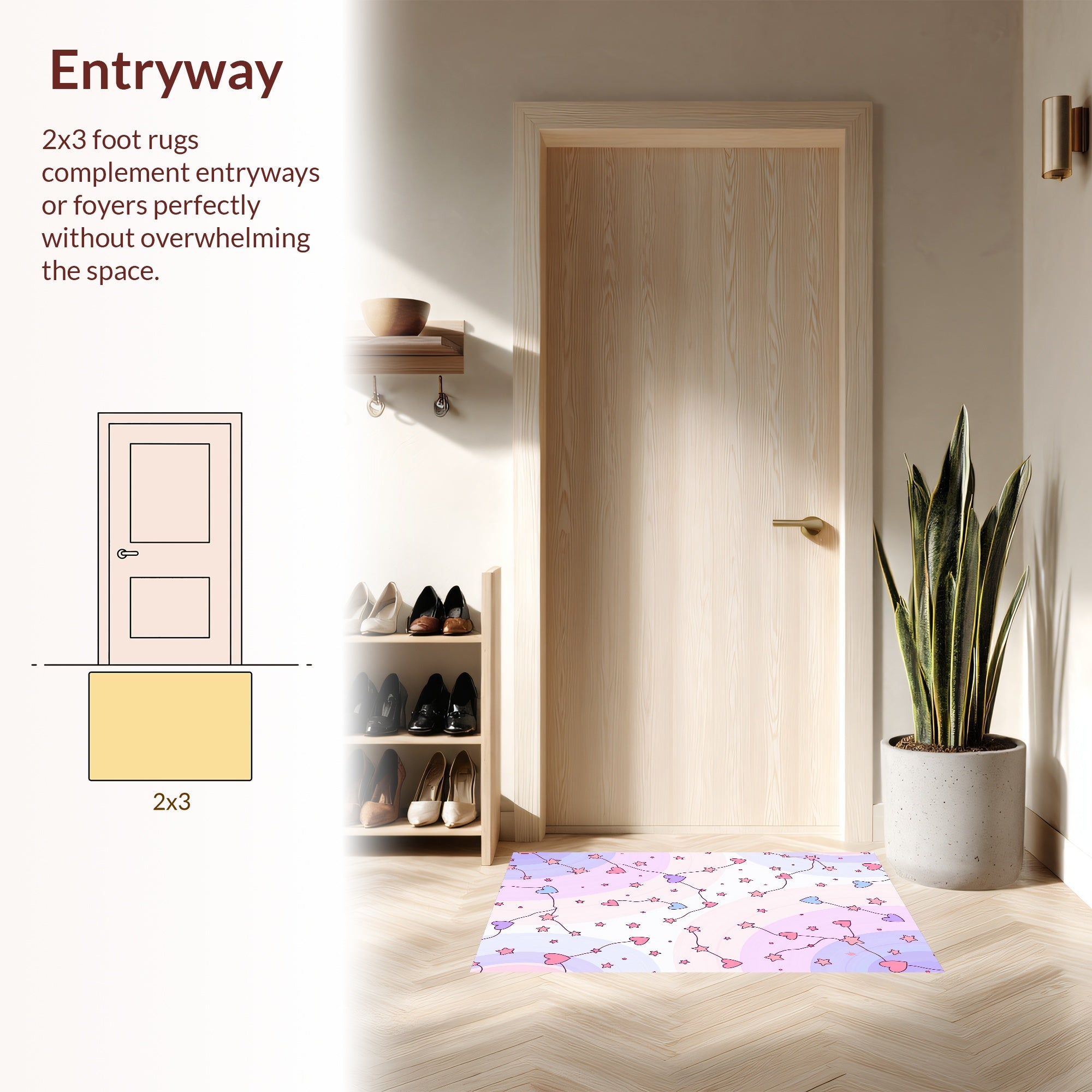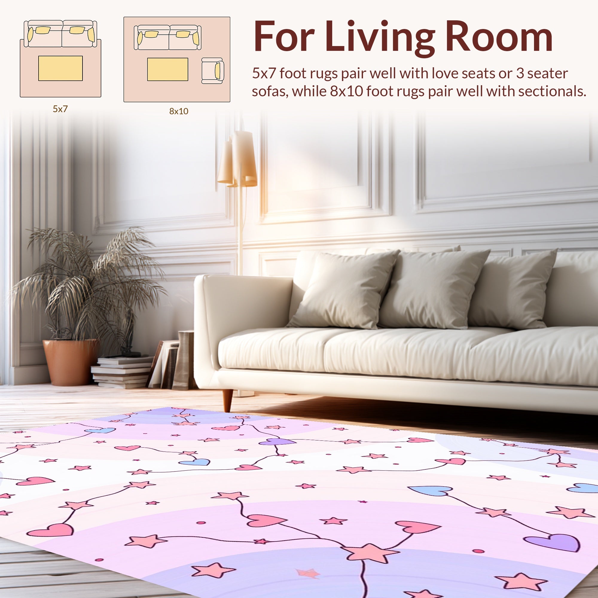 Flatwoven High Traffic Area Rug, Kawaii Constellation with Starry Pastel Motifs, Non Slip, Stain Resistant, Washable Area Rugs for Living Room, Bedroom (Pink) Overview: