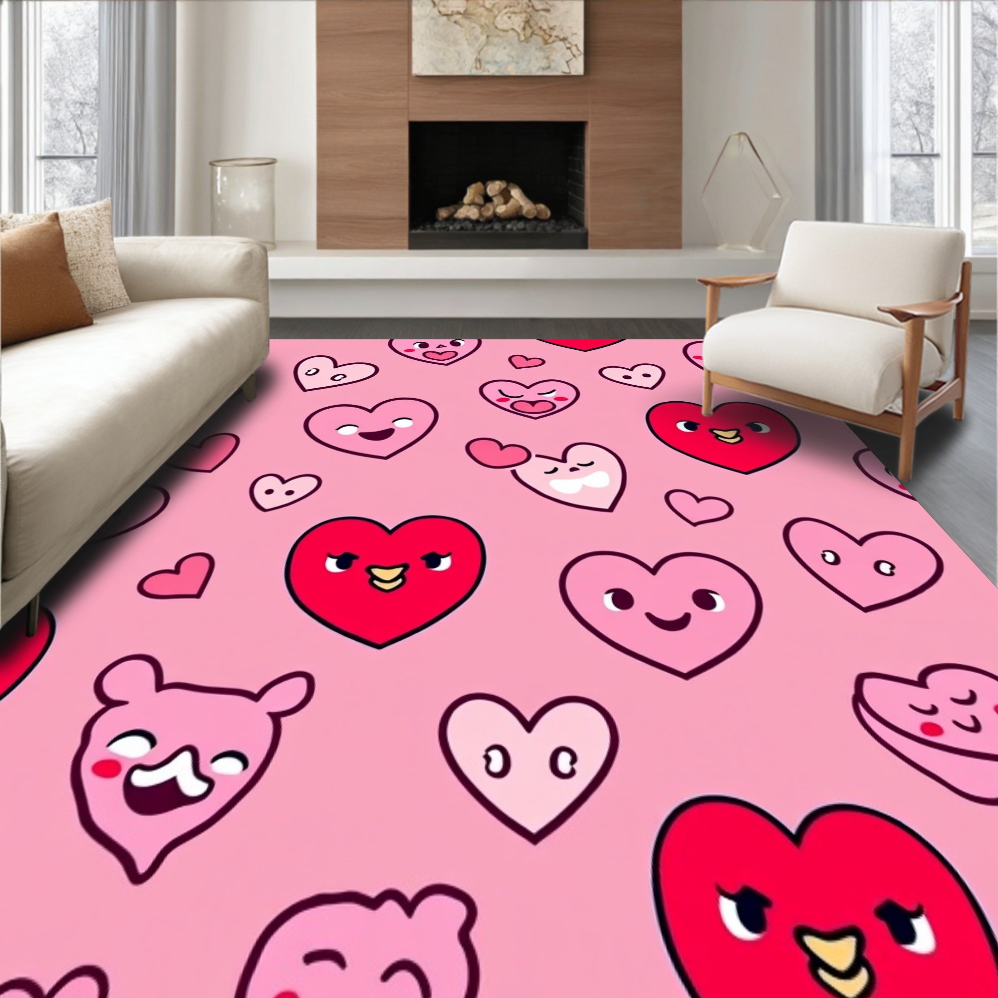 Flatwoven High Traffic Area Rug, Kawaii Floor Covering with Cute Character, Non Slip, Stain Resistant, Washable Area Rugs for Living Room, Bedroom (Pink) Overview: