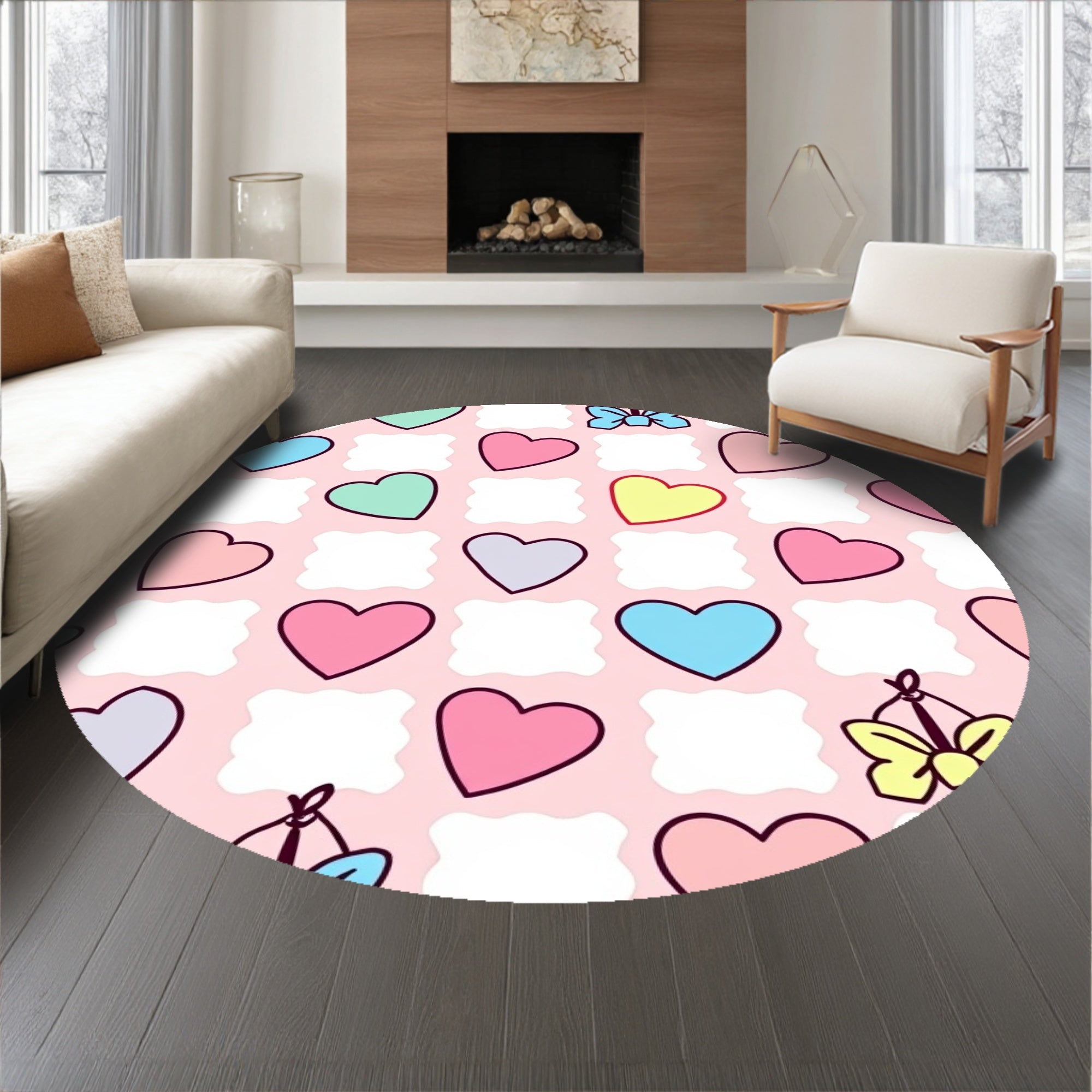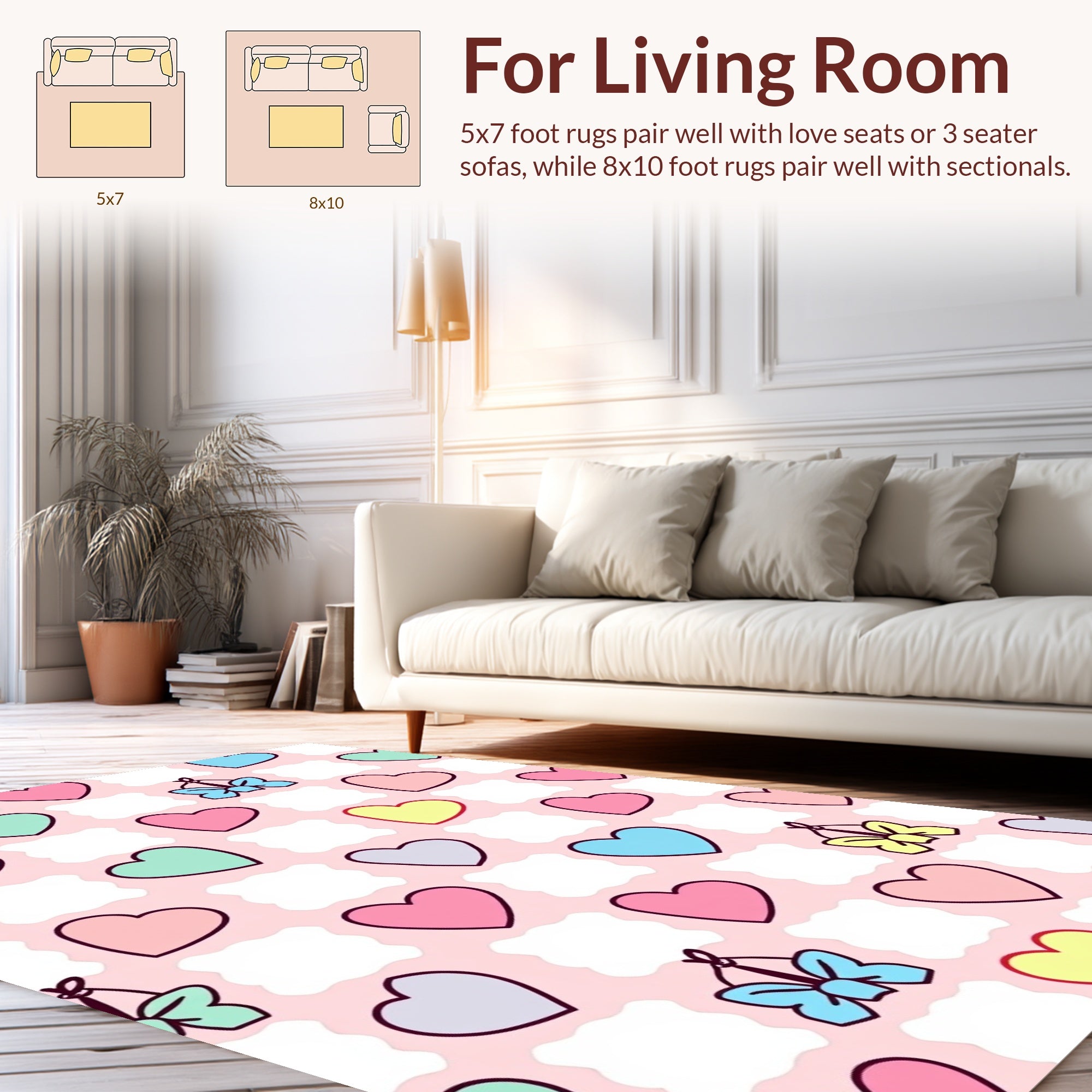 Flatwoven High Traffic Area Rug, Kawaii Mosaic with Playful Bow Accents, Non Slip, Stain Resistant, Washable Area Rugs for Living Room, Bedroom (Pink) Overview: