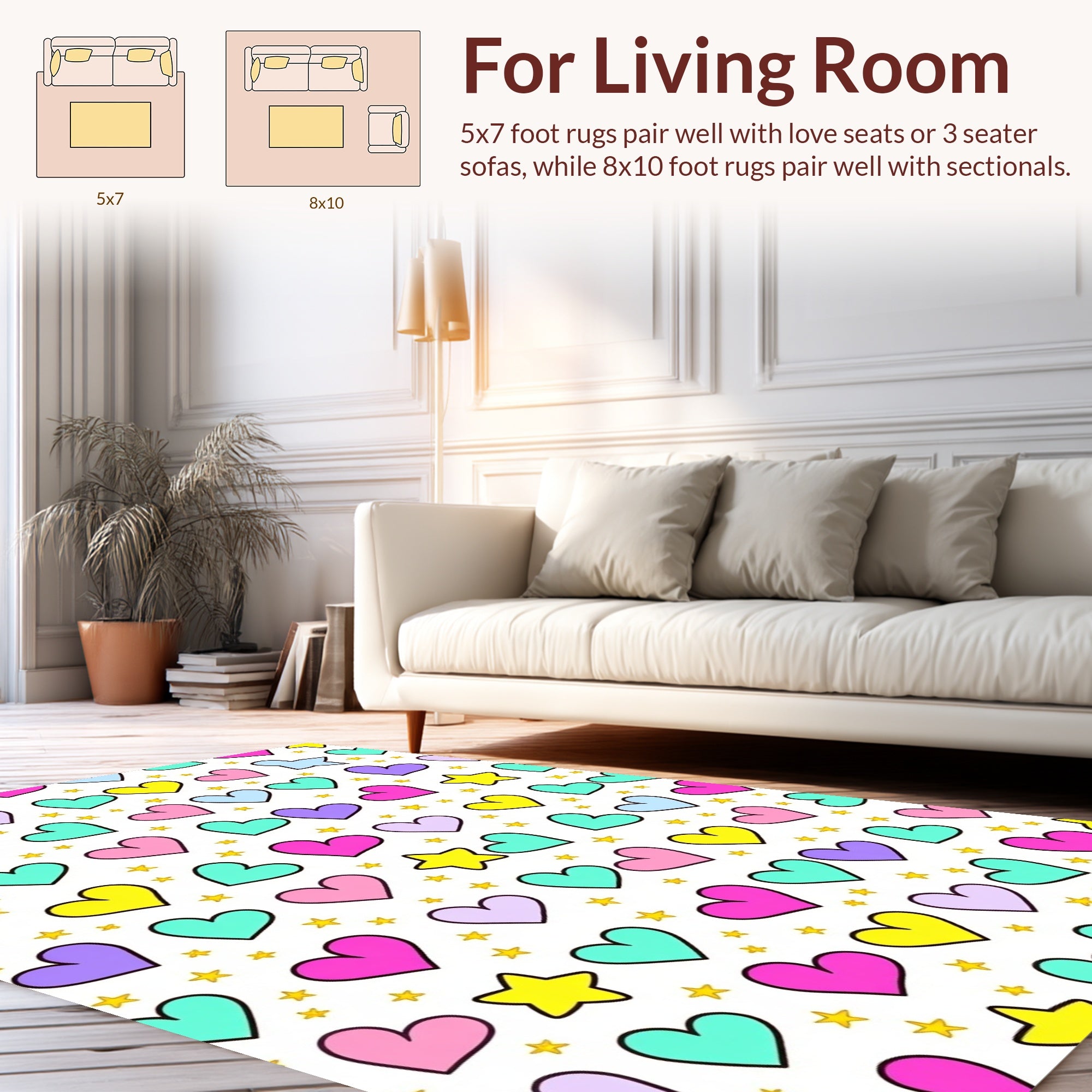 Flatwoven High Traffic Area Rug, Kawaii Mosaic with Playful Confetti Details, Non Slip, Stain Resistant, Washable Area Rugs for Living Room, Bedroom (Pink) Overview: