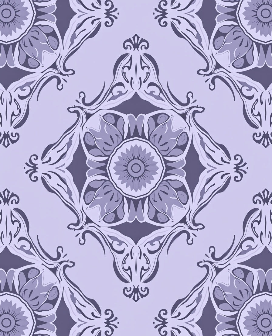 Lavender Hues with Interlocking Floral Medallions and Curves (Purple)