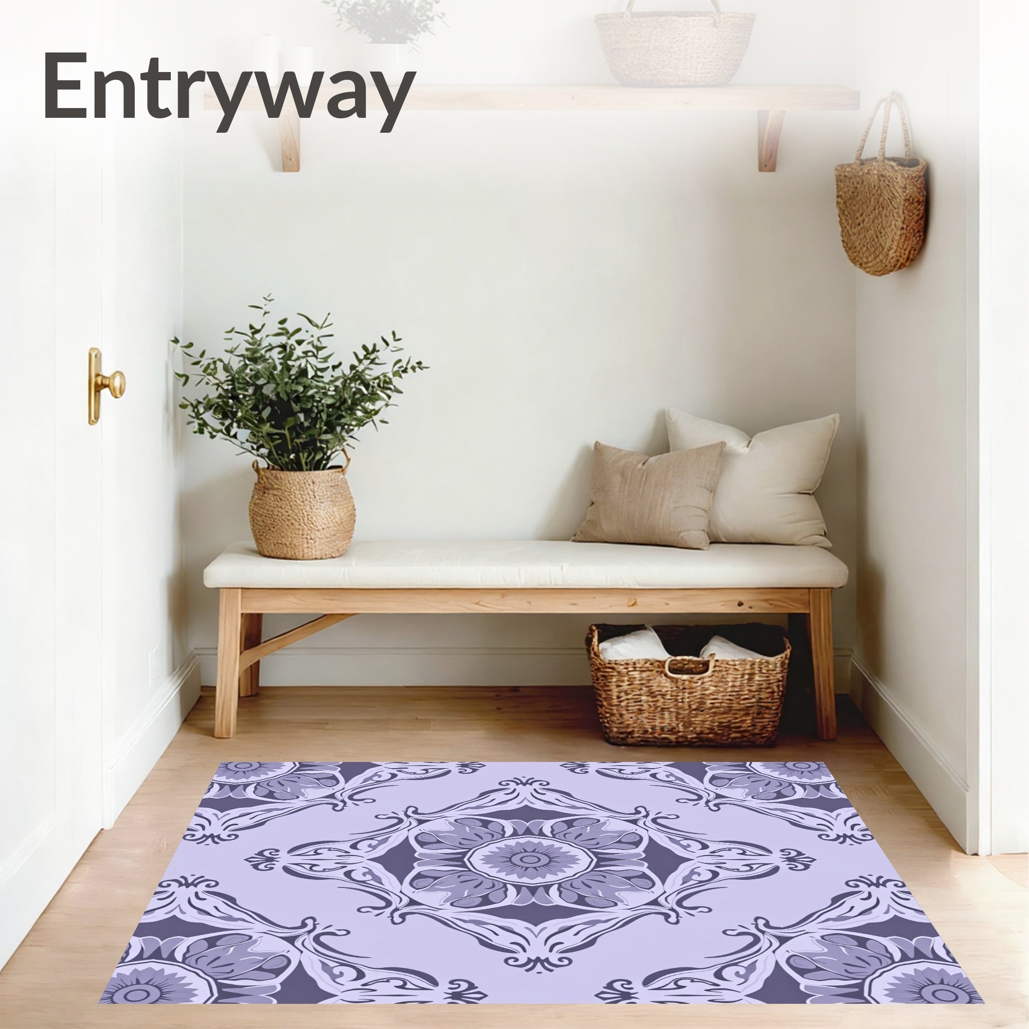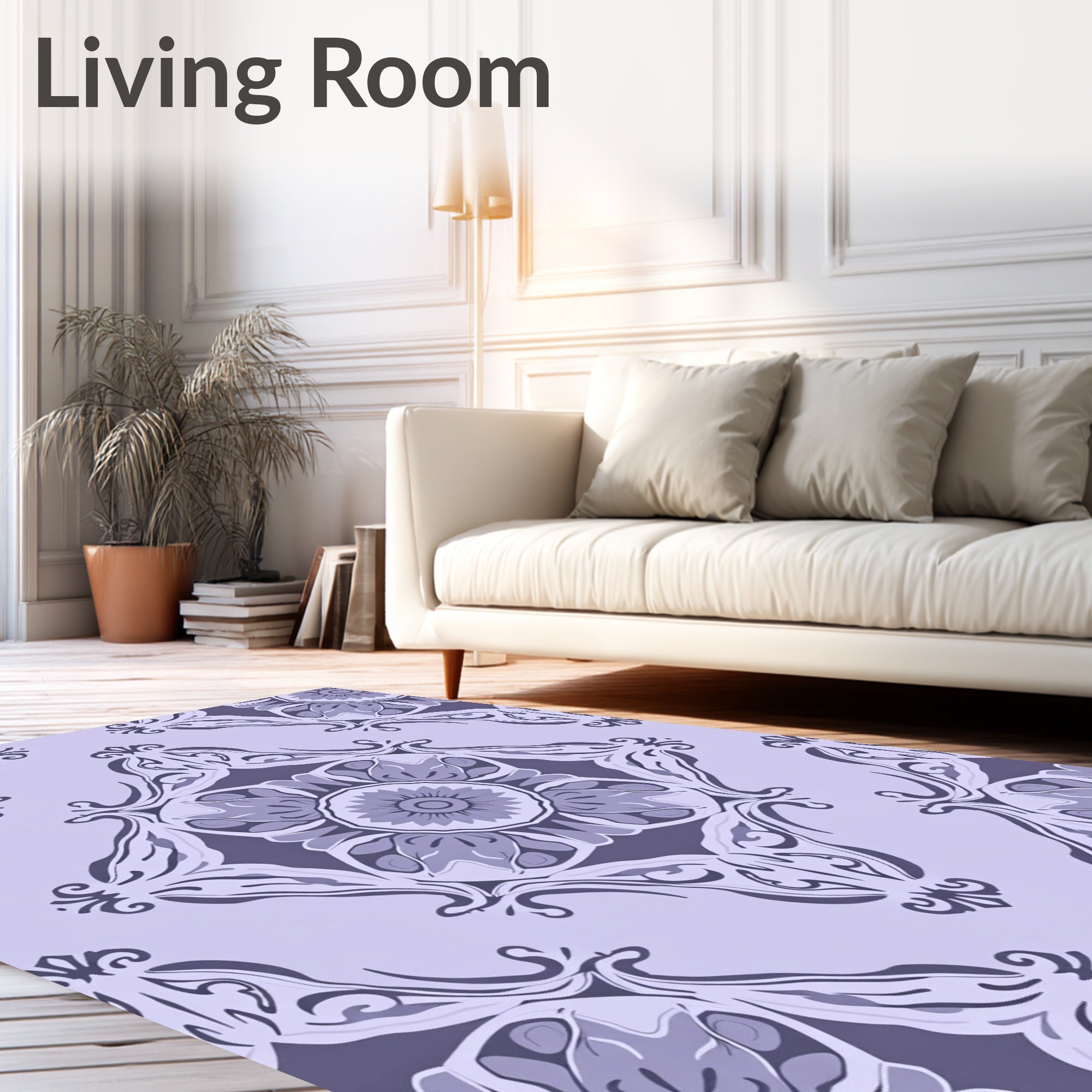 Flatwoven High Traffic Area Rug, Lavender Hues with Interlocking Floral Medallions and Curves, Non Slip, Stain Resistant, Washable Area Rugs for Living Room, Bedroom (Purple) Overview: