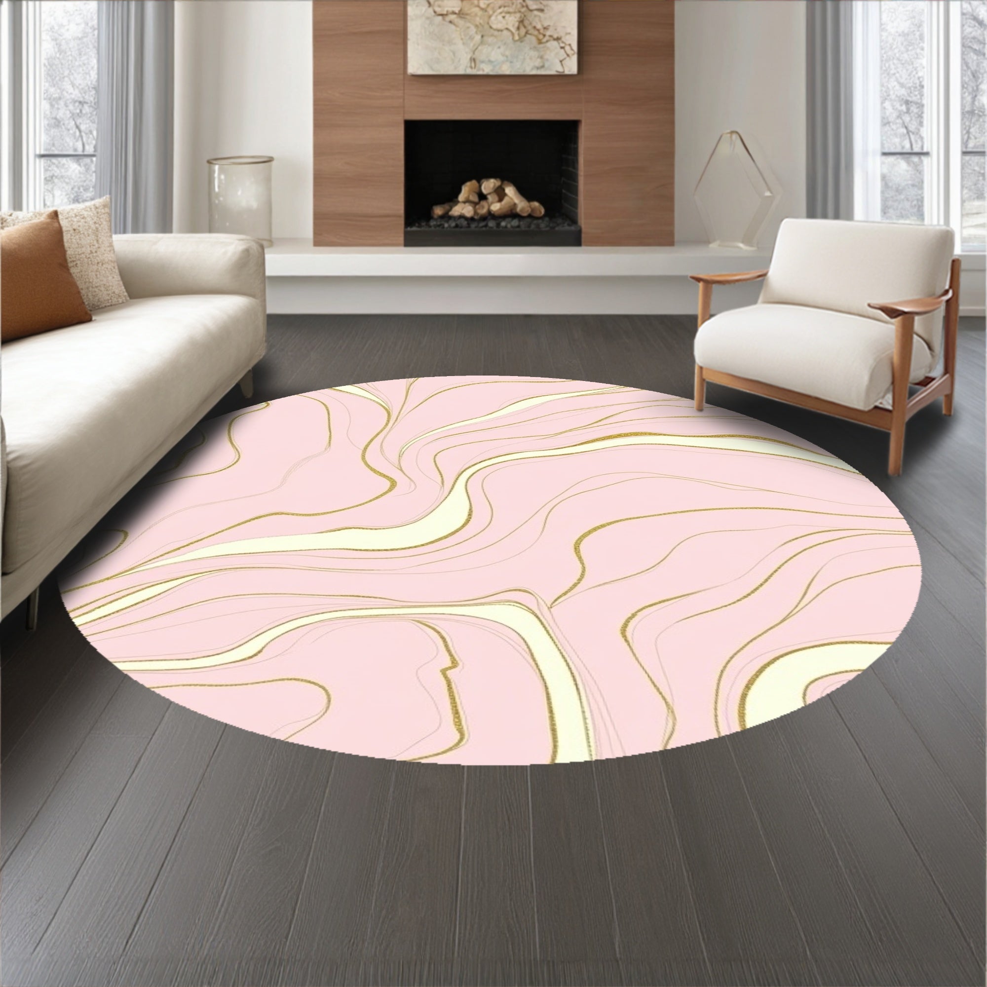 Flatwoven High Traffic Area Rug, Luxurious Marble Veined Abstract Swirl Contemporary Designer, Non Slip, Stain Resistant, Washable Area Rugs for Living Room, Bedroom (Pink) Overview: