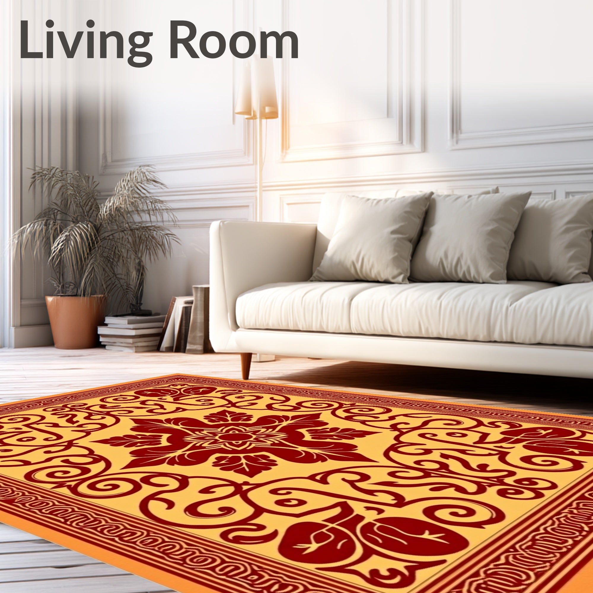 Flatwoven High Traffic Area Rug, Luxurious Medallion Plush Trellis Swirl Elegant, Non Slip, Stain Resistant, Washable Area Rugs for Living Room, Bedroom (Orange) Overview: