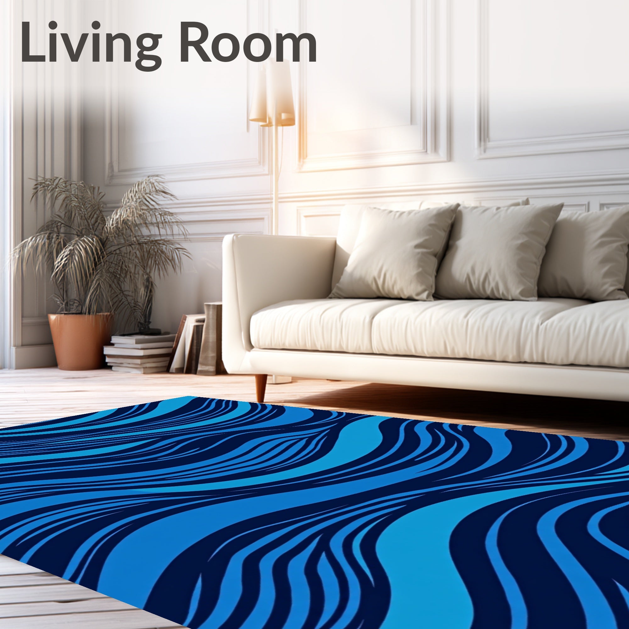 Flatwoven High Traffic Area Rug, Luxurious Plush Shag Wave Textured Elegant Accent, Non Slip, Stain Resistant, Washable Area Rugs for Living Room, Bedroom (Blue) Overview: