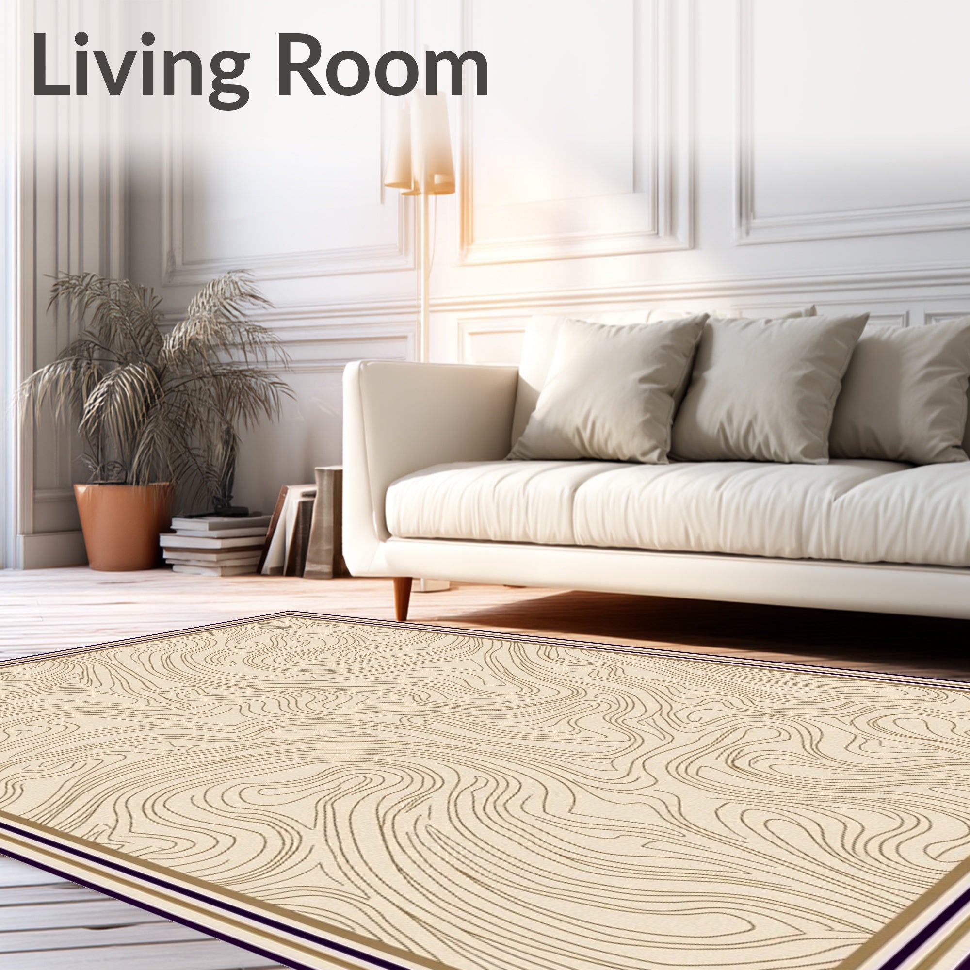 Flatwoven High Traffic Area Rug, Luxurious Wavy Interlocking Motif Elegant Textured Decorative, Non Slip, Stain Resistant, Washable Area Rugs for Living Room, Bedroom (Beige) Overview: