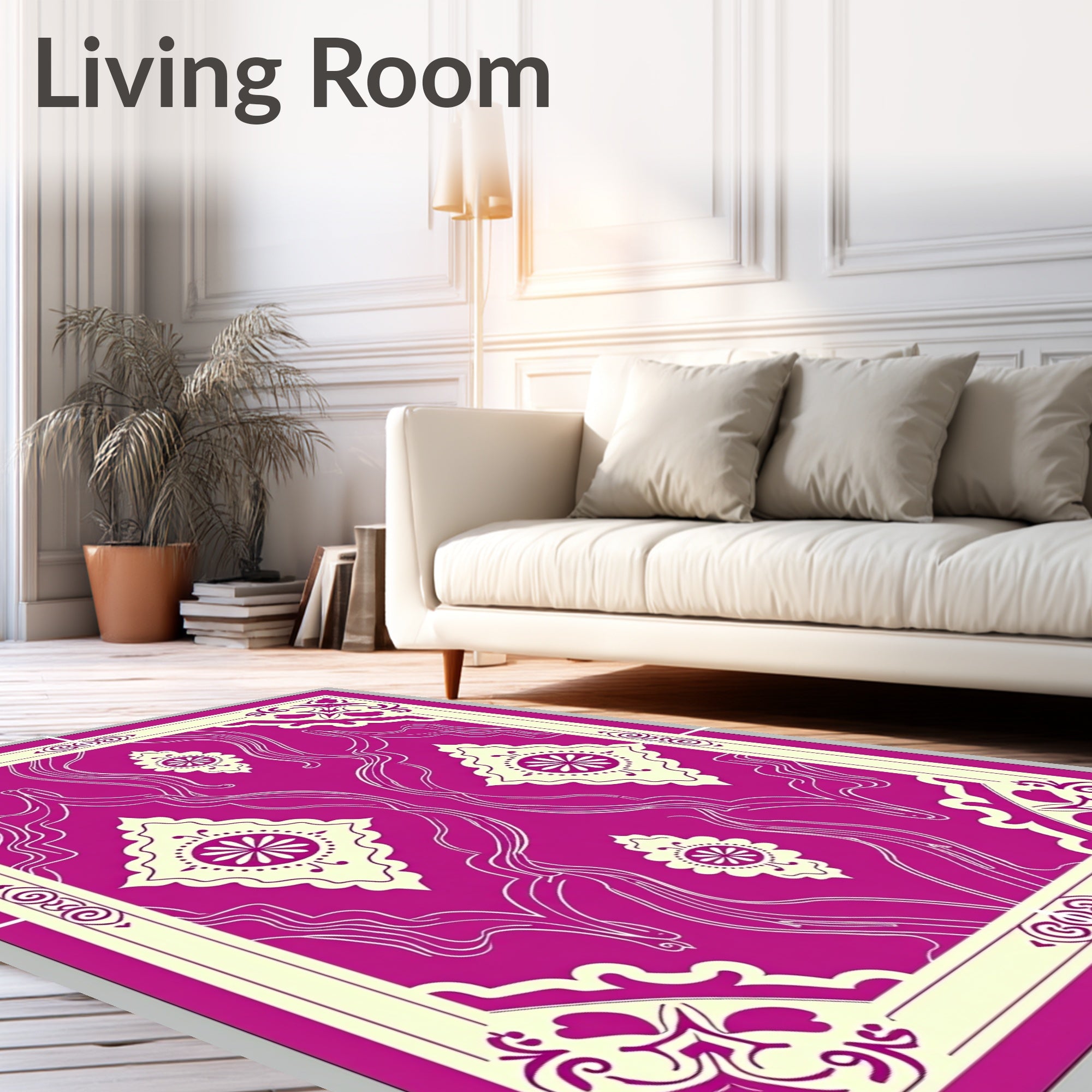 Flatwoven High Traffic Area Rug, Luxurious Wavy Medallion Vintage Charm, Non Slip, Stain Resistant, Washable Area Rugs for Living Room, Bedroom (Pink) Overview: