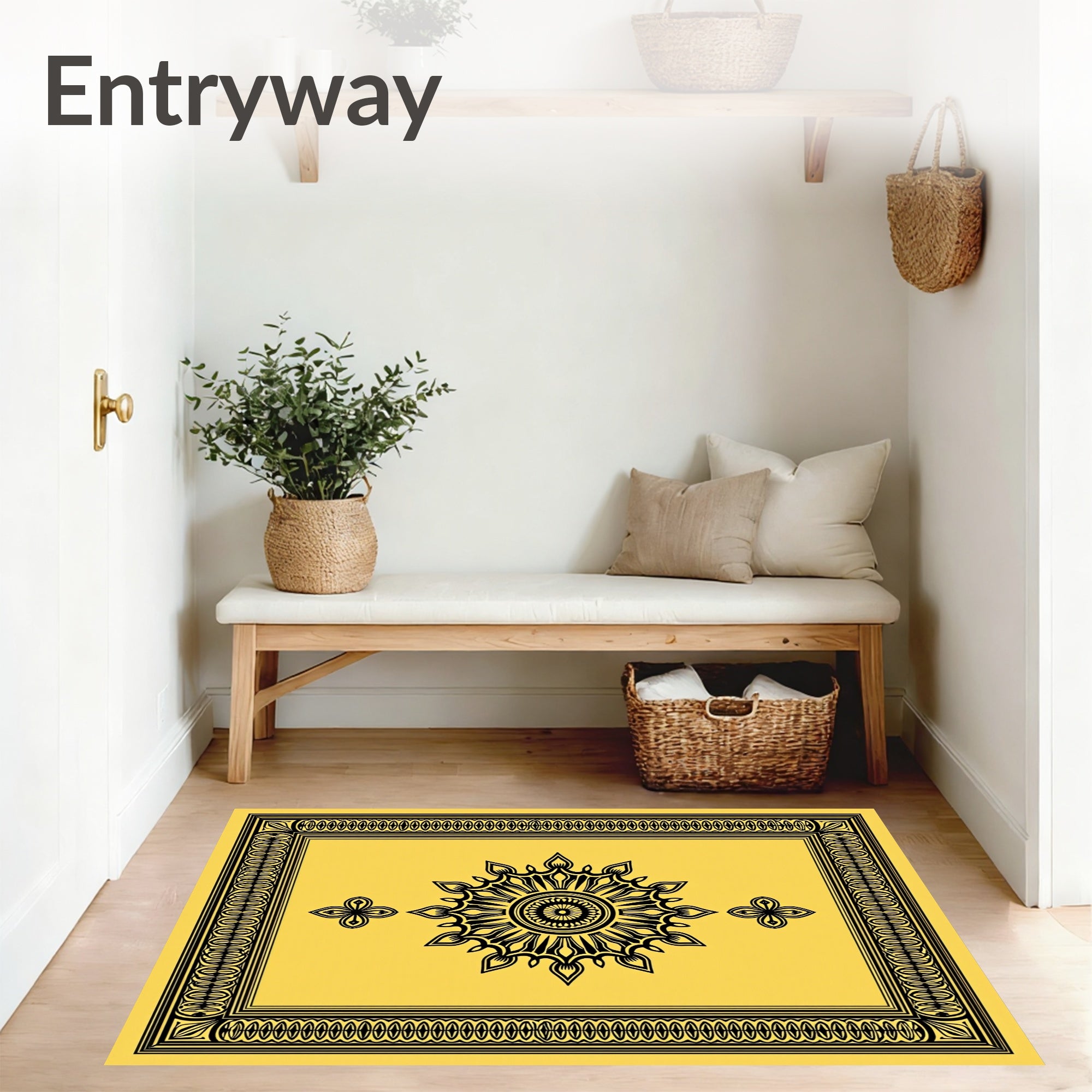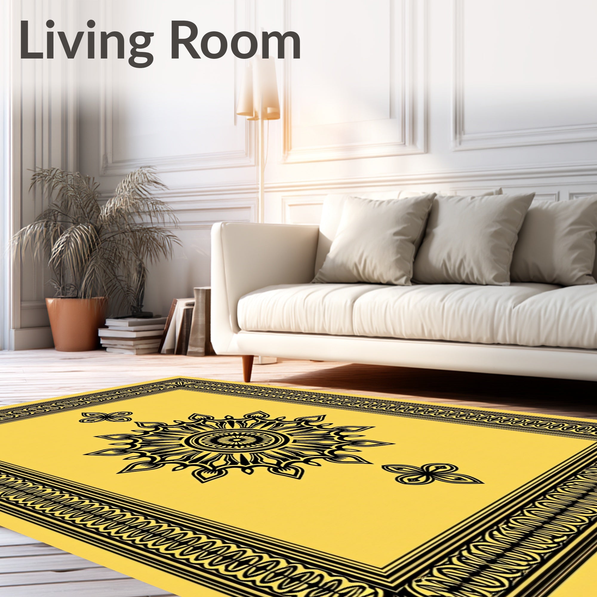 Flatwoven High Traffic Area Rug, Luxury Medallion Symmetrical Decorative Plush Enhancement, Non Slip, Stain Resistant, Washable Area Rugs for Living Room, Bedroom (Yellow) Overview: