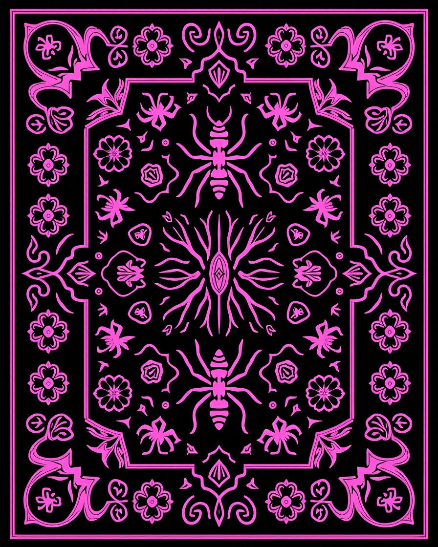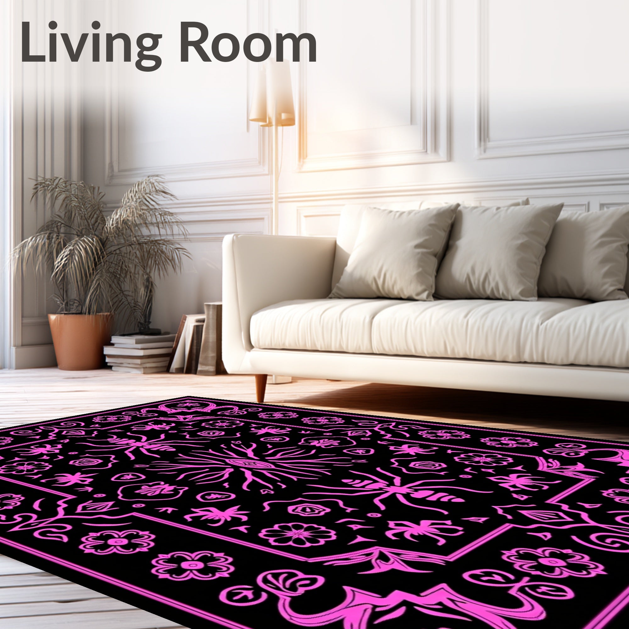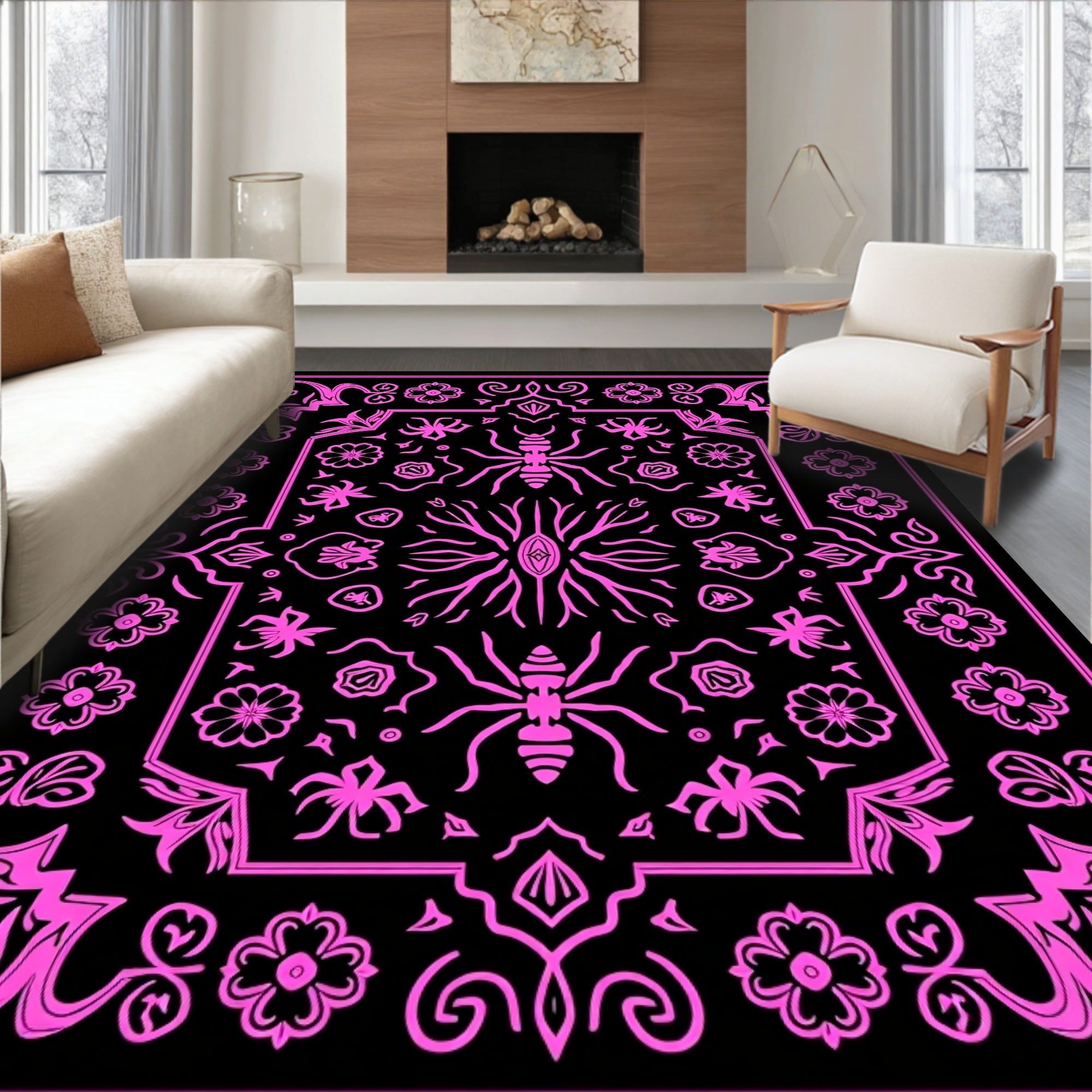 Flatwoven High Traffic Area Rug, Magical Insect Blossom Dance Esoteric, Non Slip, Stain Resistant, Washable Area Rugs for Living Room, Bedroom (Black) Overview: