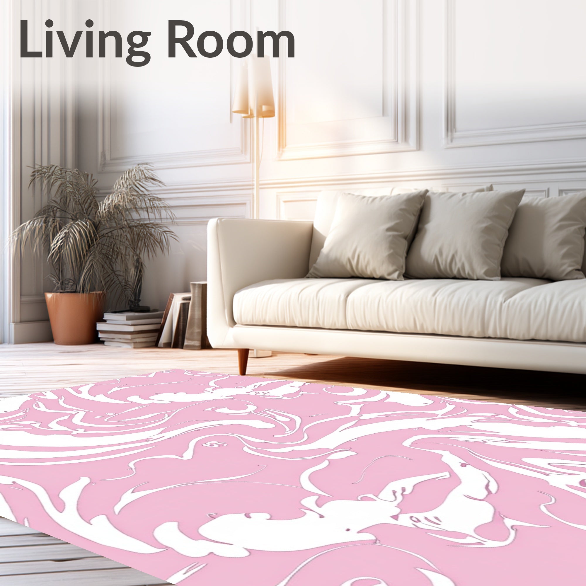 Flatwoven High Traffic Area Rug, Marbled Cloud Anti Slip Alfombra with Plush Support, Non Slip, Stain Resistant, Washable Area Rugs for Living Room, Bedroom (Pink) Overview: