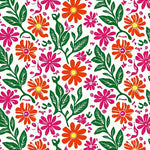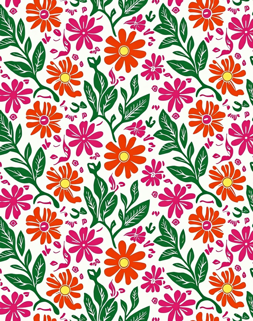 Meadow Wildflower Motif with Intertwined Vine Accents and Boho Petal Details (Orange)