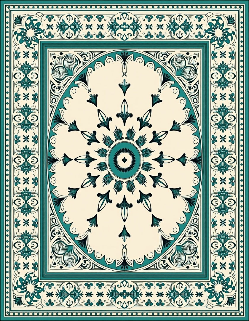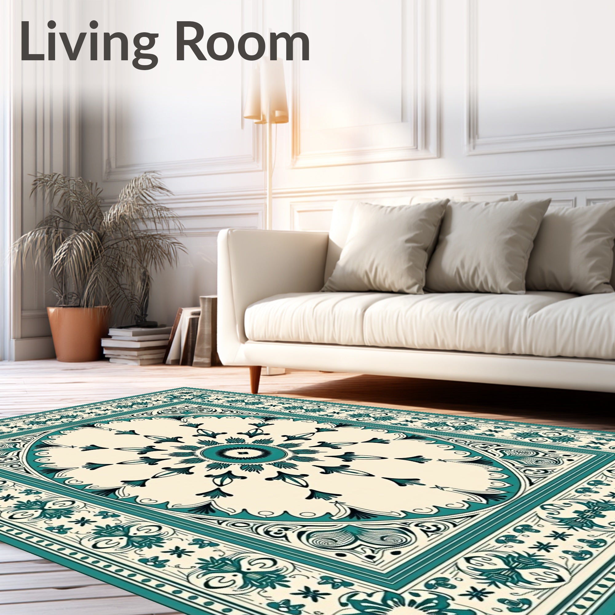 Flatwoven High Traffic Area Rug, Medallion Abstract Anti Slip, Non Slip, Stain Resistant, Washable Area Rugs for Living Room, Bedroom (Teal) Overview: