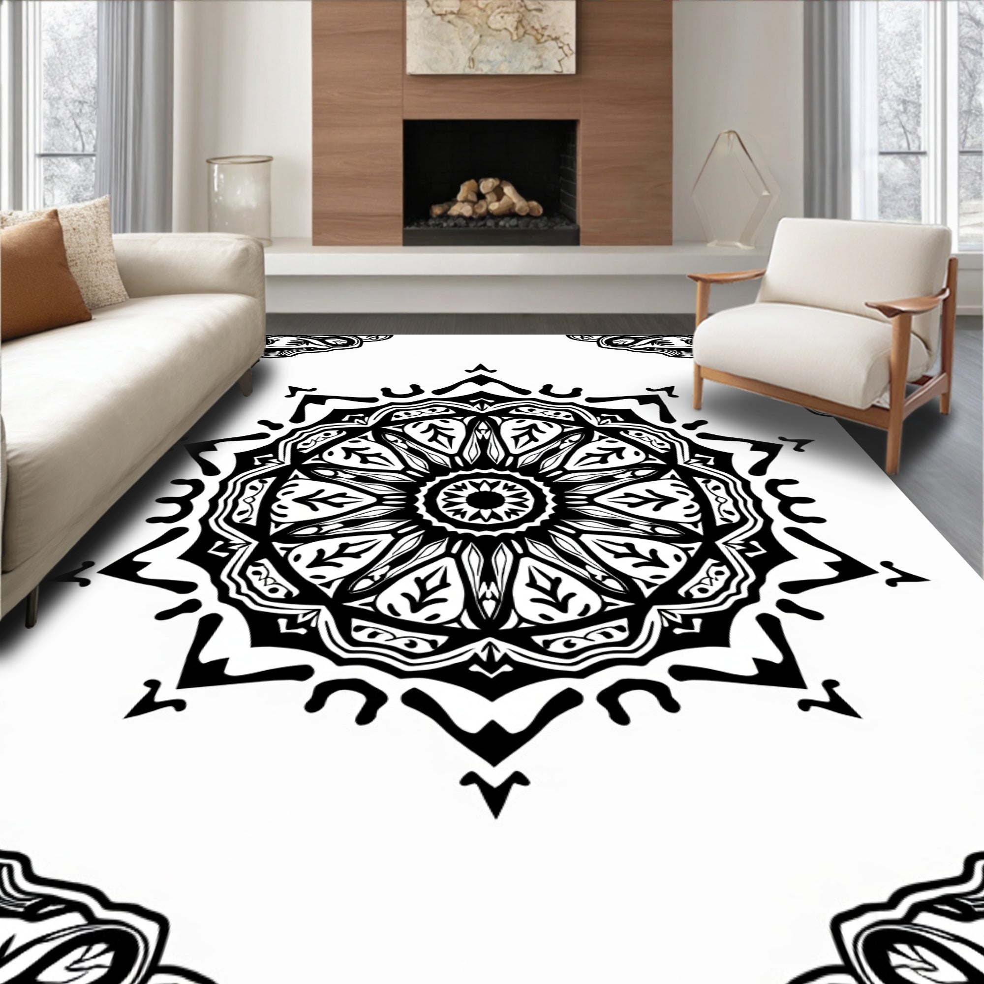 Flatwoven High Traffic Area Rug, Medallion Intricate Boho Vintage Inspired Floor, Non Slip, Stain Resistant, Washable Area Rugs for Living Room, Bedroom (Black) Overview: