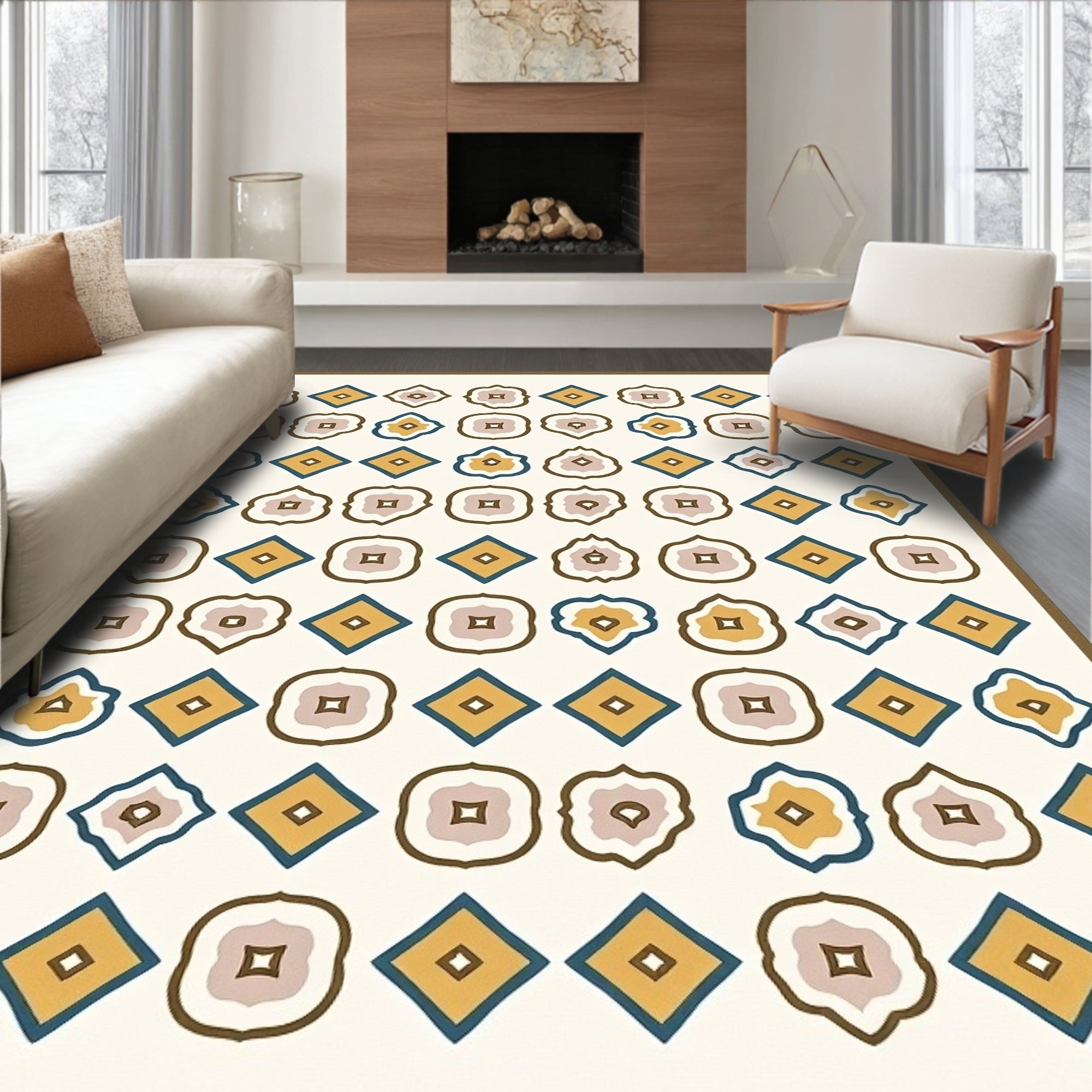 Flatwoven High Traffic Area Rug, Mediterranean Mosaic Quatrefoil Decorative Eclectic, Non Slip, Stain Resistant, Washable Area Rugs for Living Room, Bedroom (Beige) Overview: