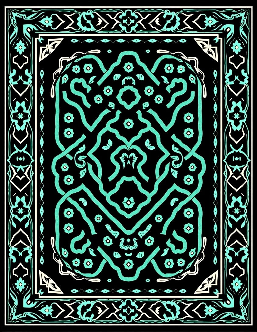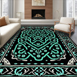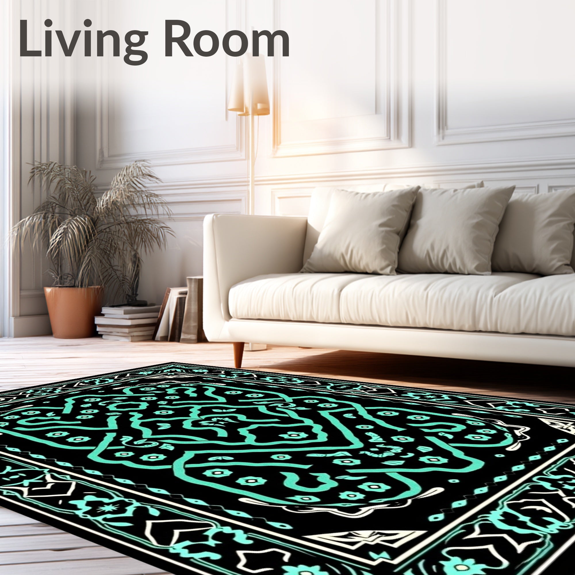 Flatwoven High Traffic Area Rug, Midnight Garden Labyrinth Plush Decorative Artistic Showpiece, Non Slip, Stain Resistant, Washable Area Rugs for Living Room, Bedroom (Black) Overview: