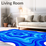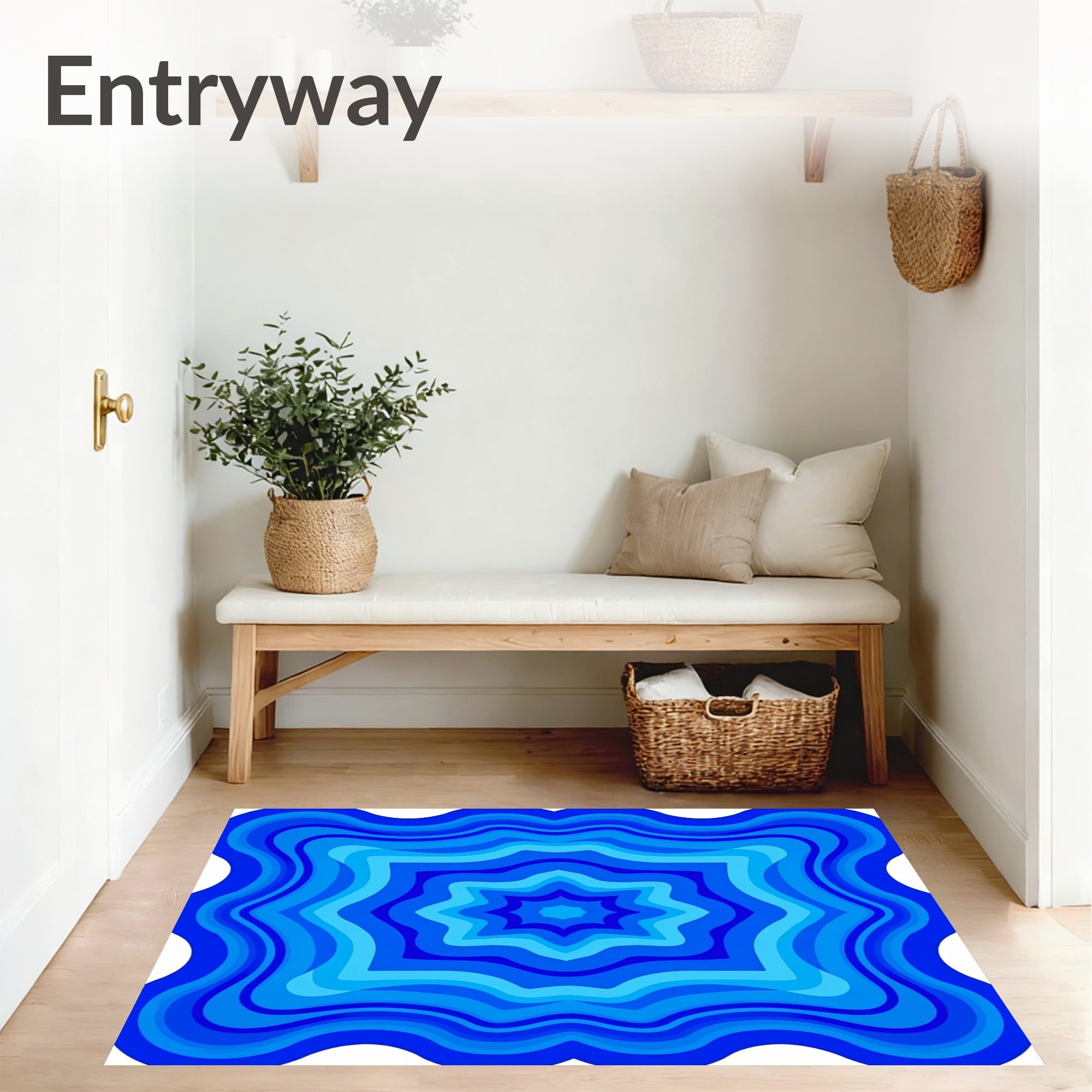 Flatwoven High Traffic Area Rug, Minimalist Ripple Motif With Border Design, Non Slip, Stain Resistant, Washable Area Rugs for Living Room, Bedroom (Blue) Overview:
