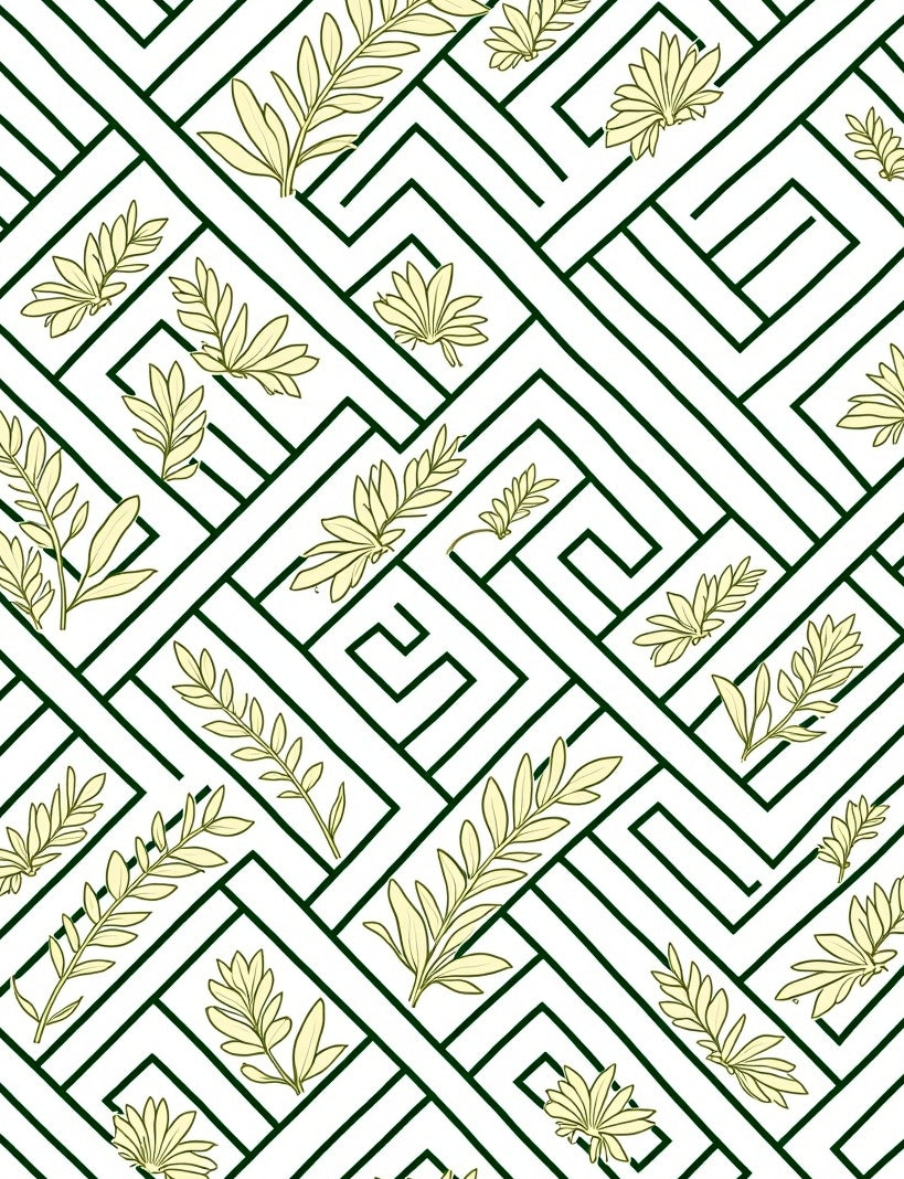 Modern Interlocking Chevron and with Subtle Floral Accents (Green)