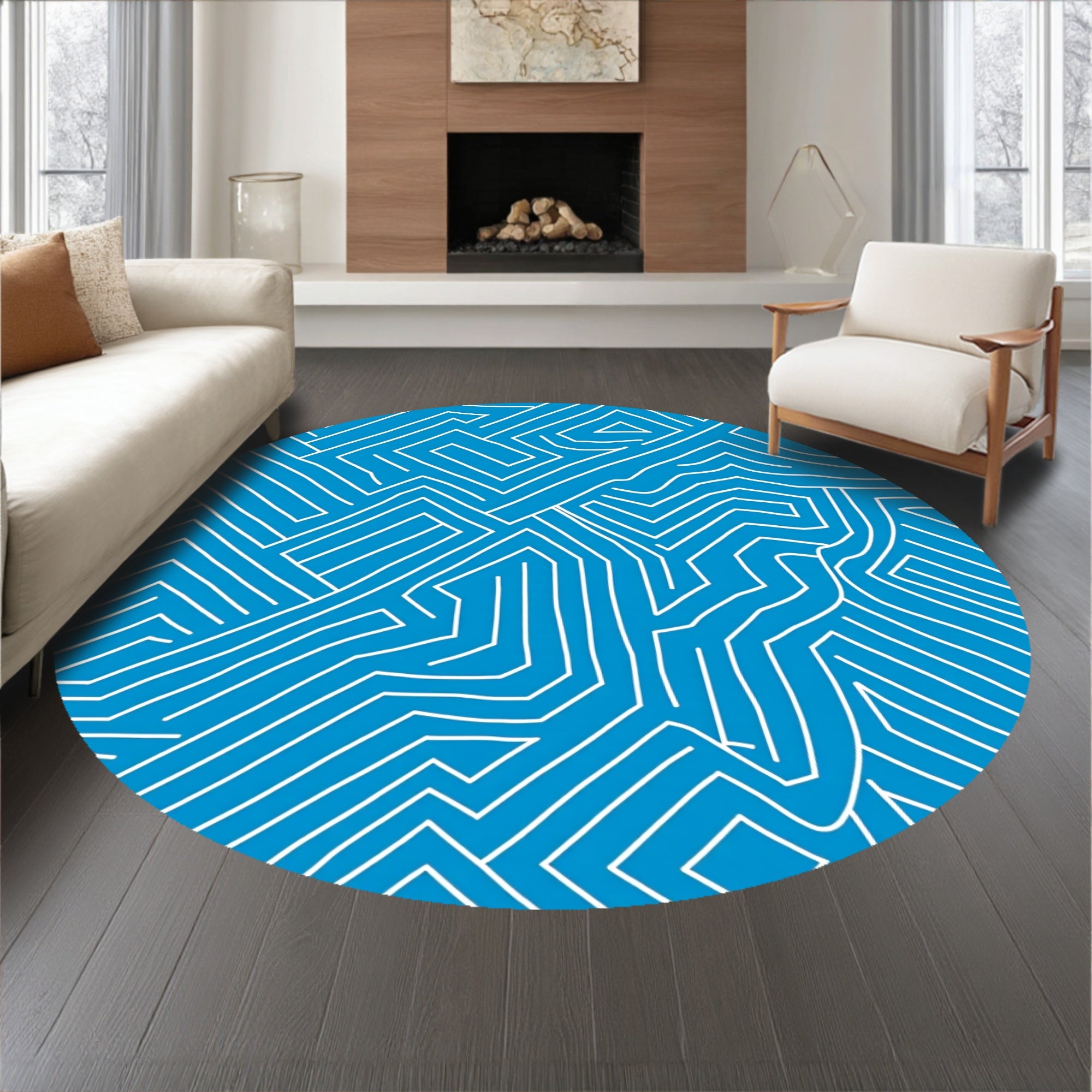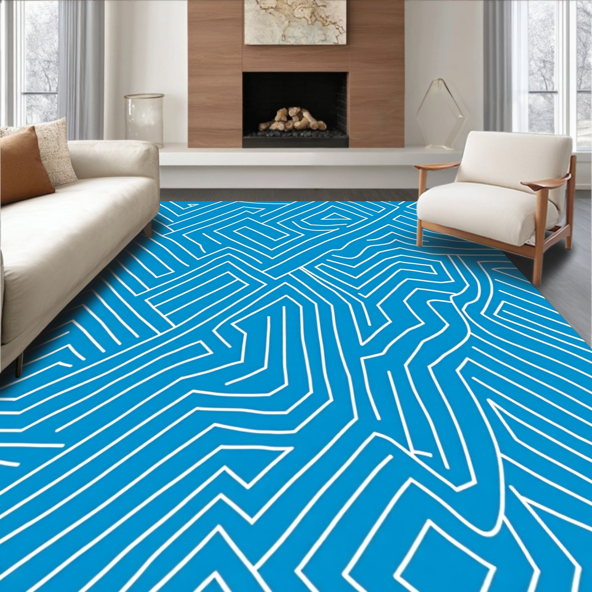 Modern Interlocking Maze with Dynamic Streamlined Lines (Blue)