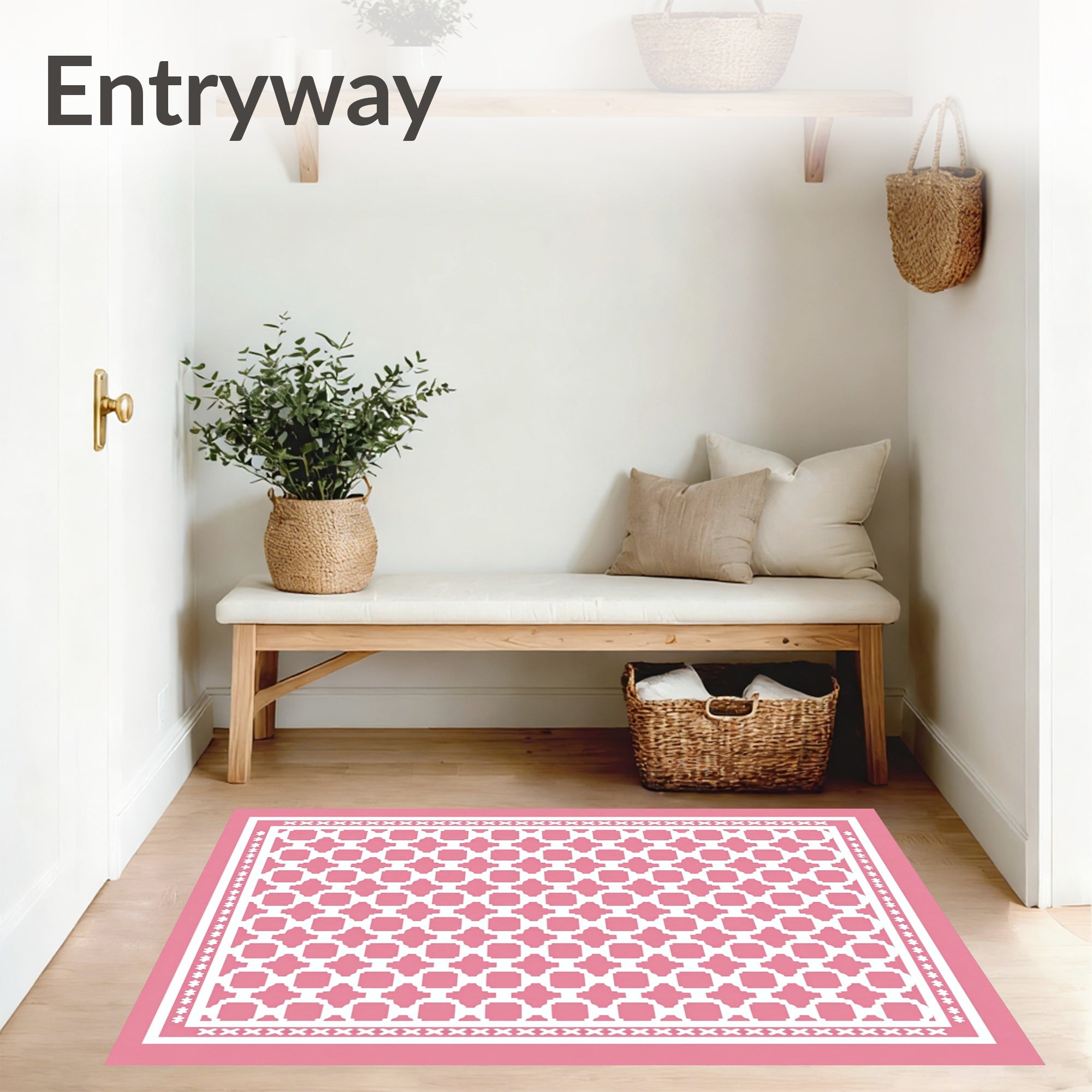 Flatwoven High Traffic Area Rug, Modern Minimalist Trellis Framework Bordered Accent, Non Slip, Stain Resistant, Washable Area Rugs for Living Room, Bedroom (Pink) Overview:
