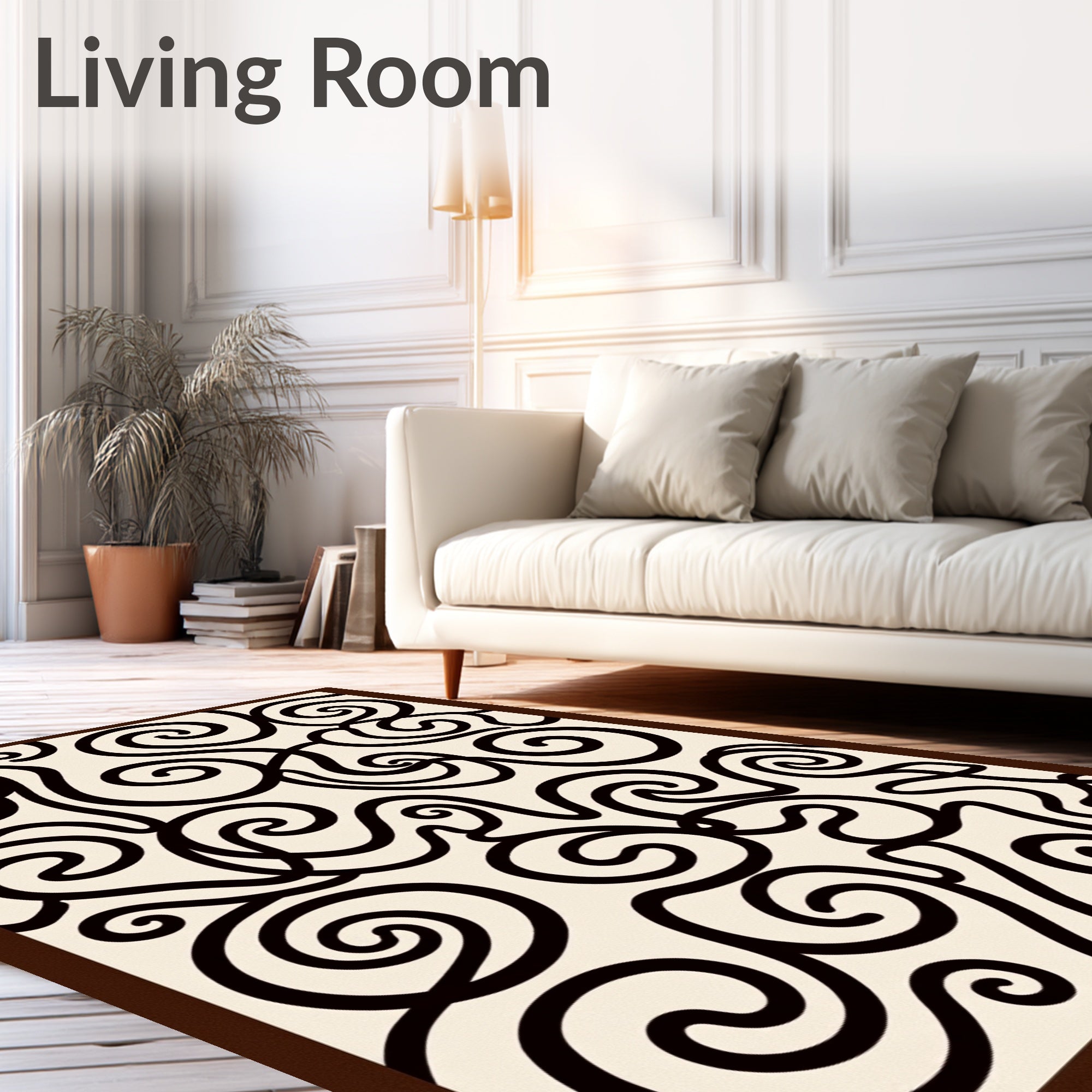 Monochrome Swirl Aesthetic Luxury Plush Shag Decorative Flooring (Beige)