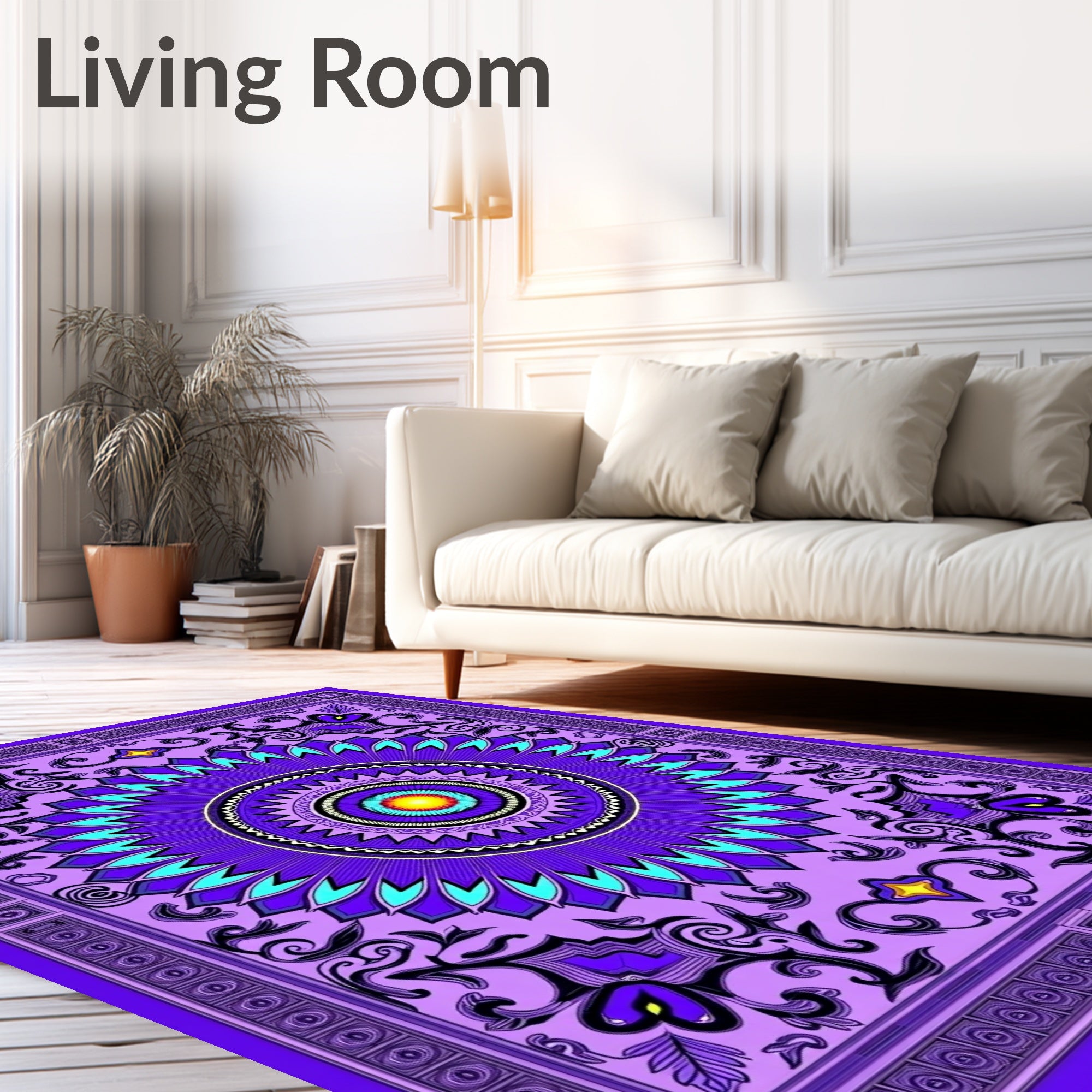 Flatwoven High Traffic Area Rug, Mystic Medallion Ornate Decorative Symmetrical Sophisticated, Non Slip, Stain Resistant, Washable Area Rugs for Living Room, Bedroom (Purple) Overview: