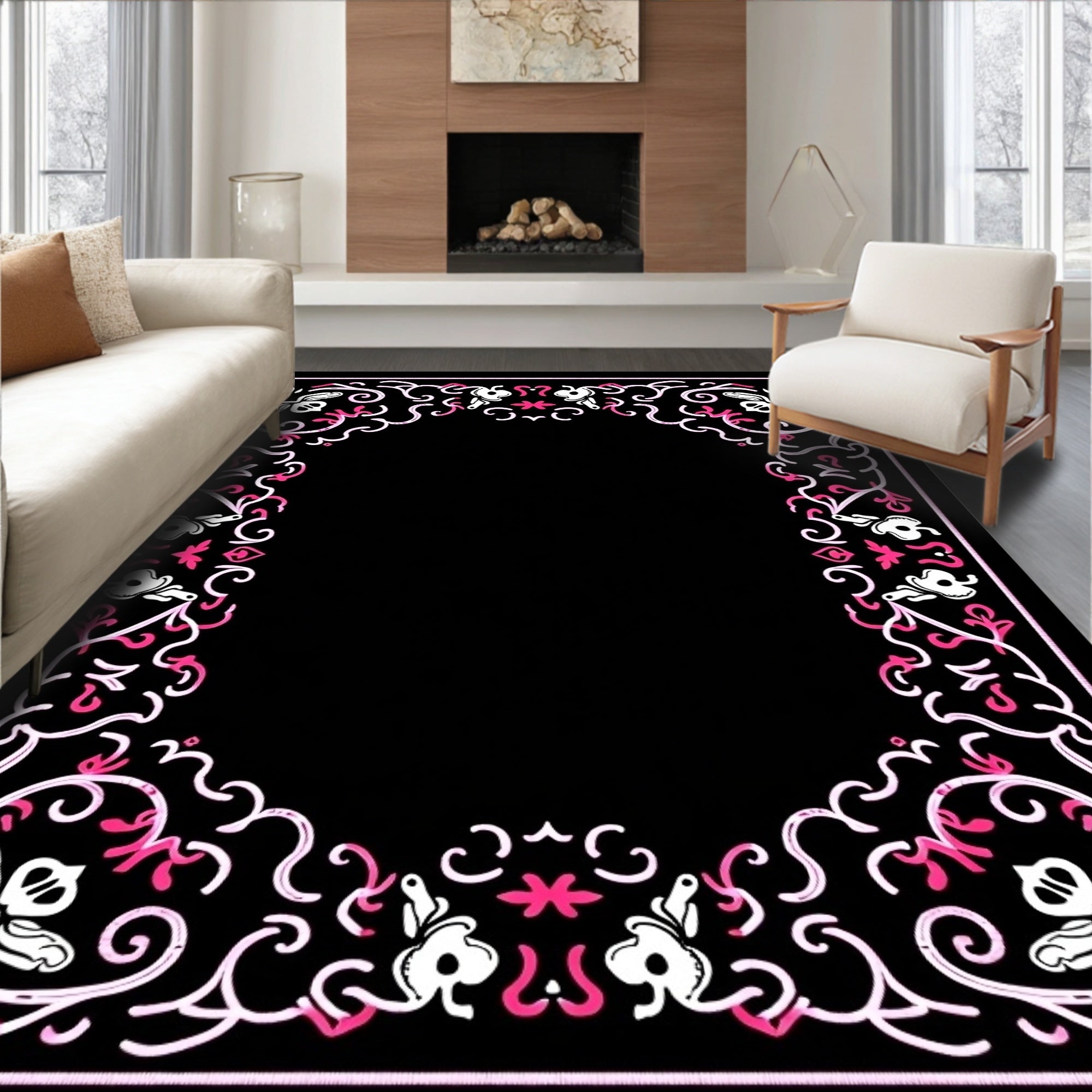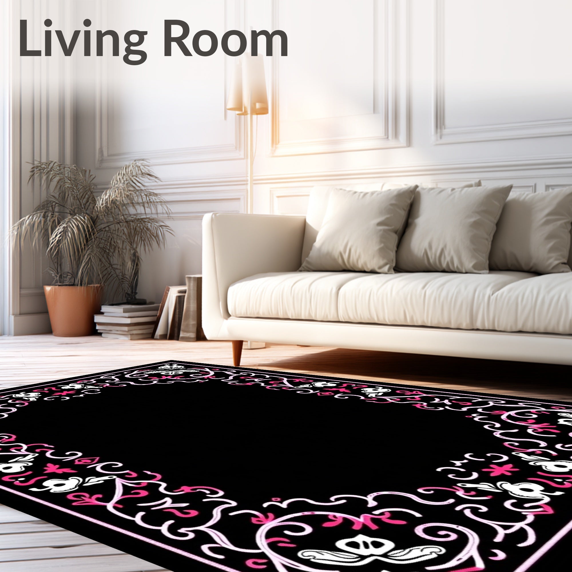 Flatwoven High Traffic Area Rug, Mystic Skull Vine with Baroque Insect Embellishments, Non Slip, Stain Resistant, Washable Area Rugs for Living Room, Bedroom (Black) Overview: