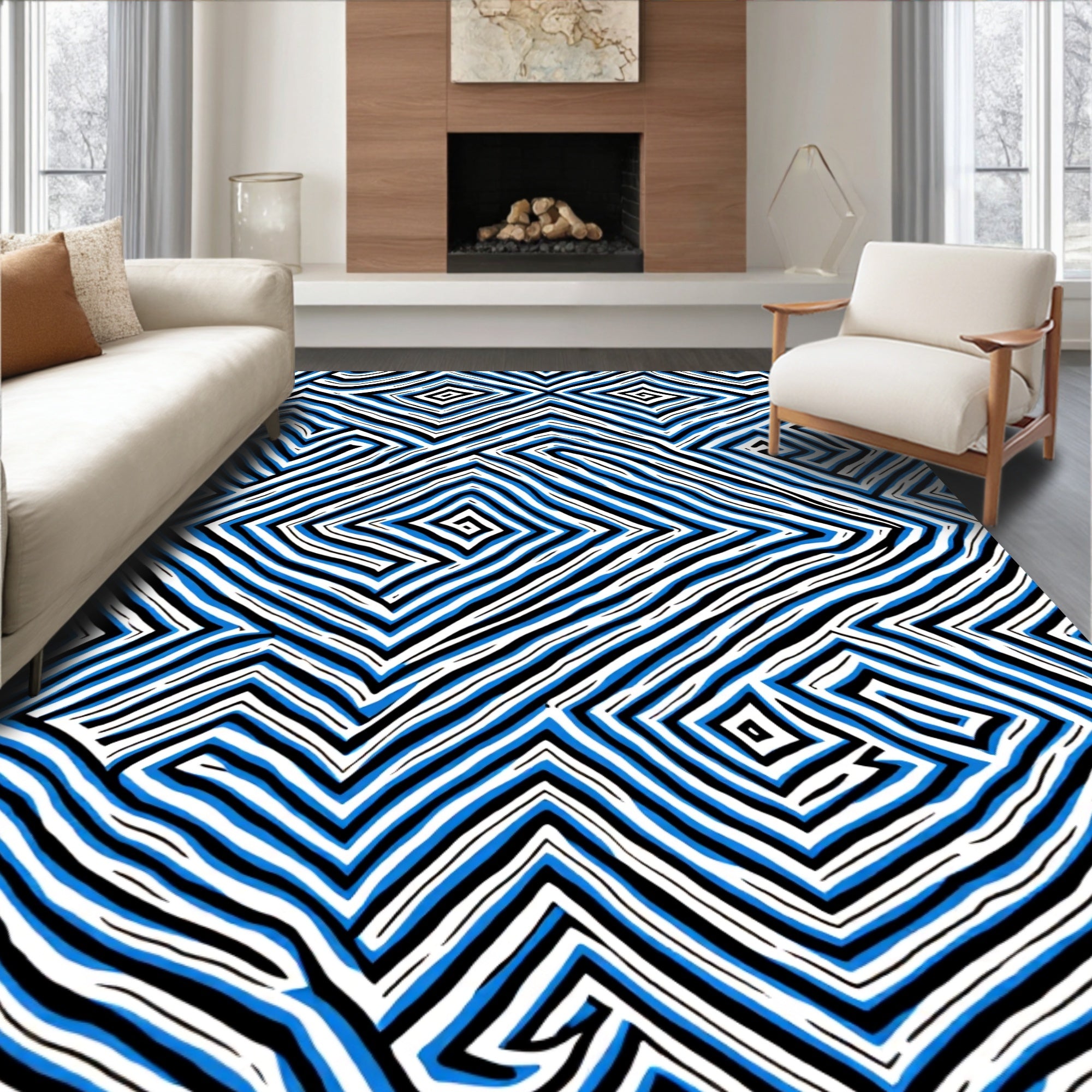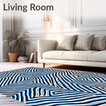 Flatwoven High Traffic Area Rug, Mystic Zigzag With Hypnotic Spiral, Non Slip, Stain Resistant, Washable Area Rugs for Living Room, Bedroom (Blue) Overview:
