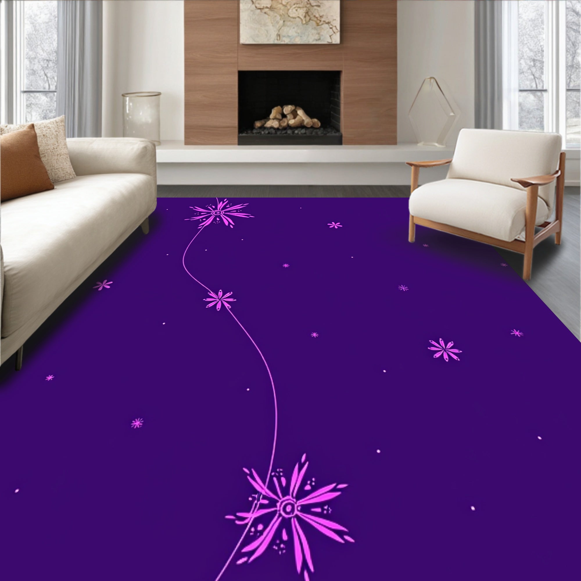 Flatwoven High Traffic Area Rug, Mystical Constellation Celestial Accent Throw, Non Slip, Stain Resistant, Washable Area Rugs for Living Room, Bedroom (Purple) Overview: