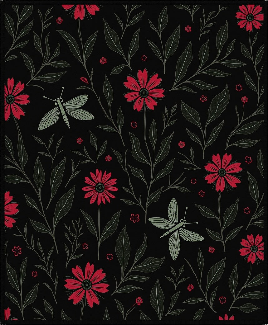 Mystical Insect and Bloom Composition Featuring Gothic Floral Arrangements (Black)
