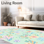 Flatwoven High Traffic Area Rug, Mystical Meadow Botanical Artwork, Non Slip, Stain Resistant, Washable Area Rugs for Living Room, Bedroom (Pink) Overview: